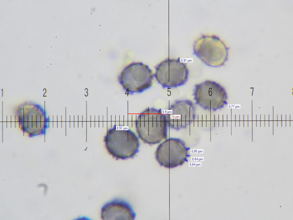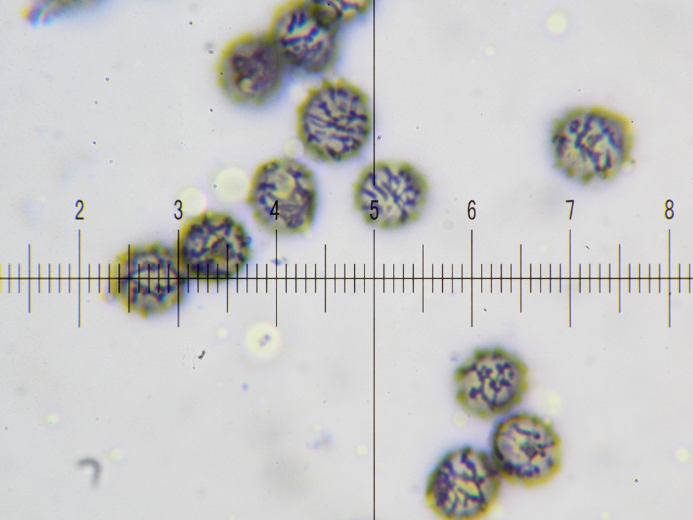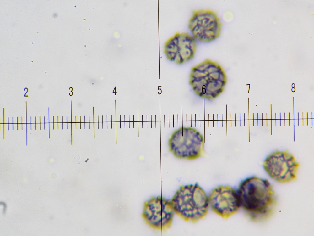 16) 1000x, Melzer, Sporen rundlich-oval, Warzen stumpf-keglig, bis zu 0,9 mü hoch