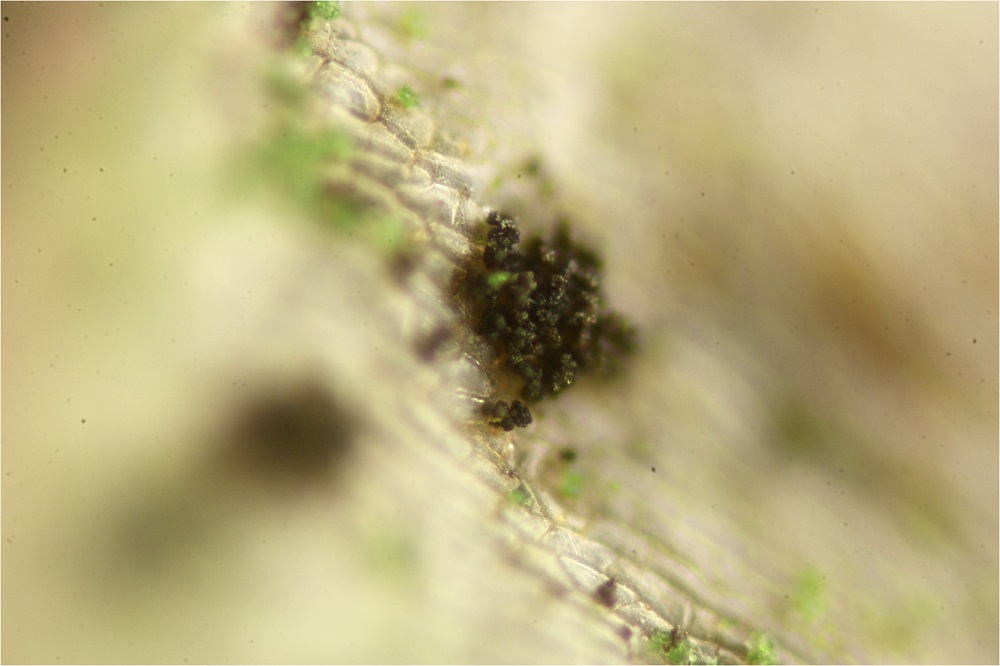 Trimmatostroma scutellare auf Zapfen von Larix decidua (Lärche)