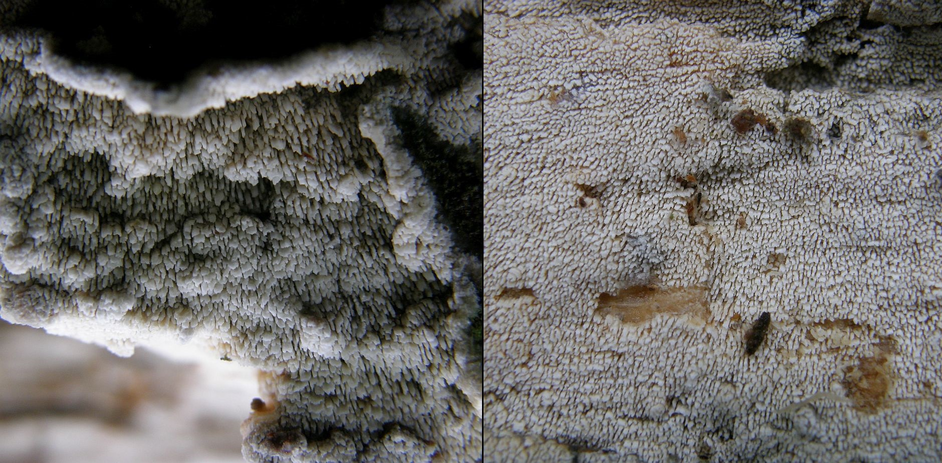 >Phanerochaete omnivora = Dichtstachelige Zystidenkruste<