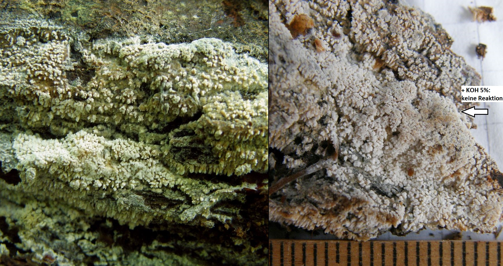 In –žXylodon–œ sammeln sich momentan haufenweise Arten, aber auch das scheint nicht das Ende vom Lied uund noch kein wirklich einheitliches Bild zu sein. Warum zB Hyphodontia pruni aus Xylodon wieder nach Lyomyces umgezogen sein soll, erschließt sich erstmal morphologisch noch nicht so richtig, eventuell sind die Grenzziehungen zwischen den Gattungen noch nicht ganz konsistent.