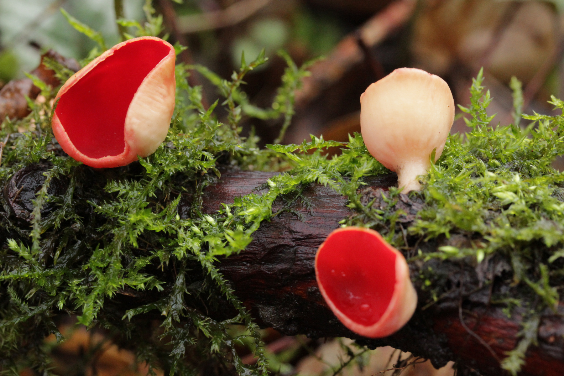 Eine Sarcoscypha bringt natürlich immer Farbe rein, aber die anderen Funde können sich ebenso sehen lassen, wie von euch in Szene gesetzt.