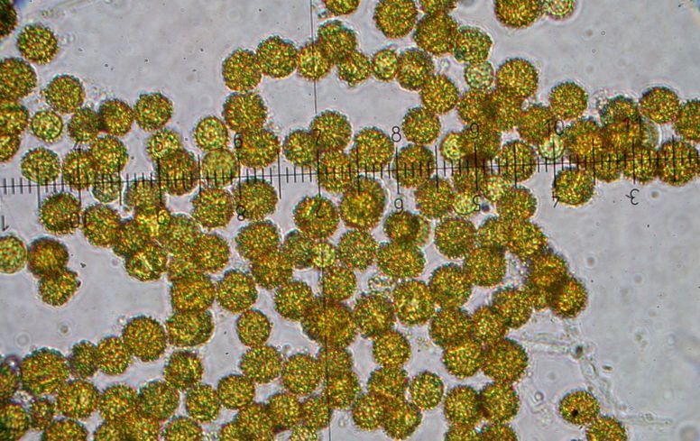 mikroskopisches Bild: sieht alles gelb aus, viele Sporen