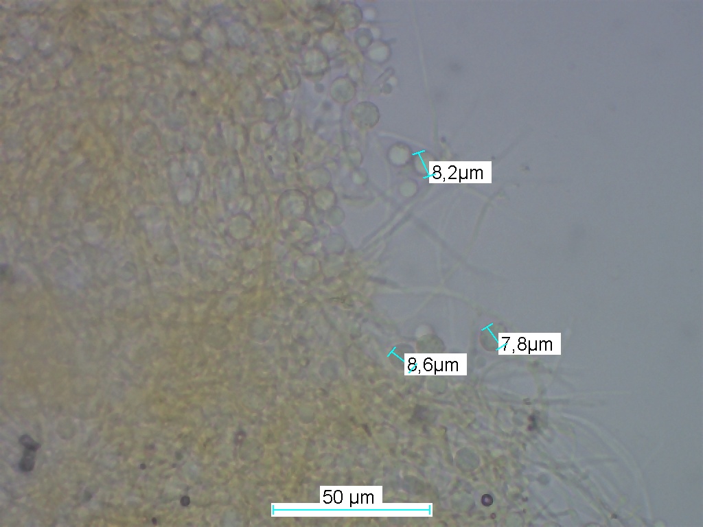 Sporengröße von 30 µm: NEIN!! Ich habe selber schon Goldschimmel von einem Röhrling mikroskopiert, da waren die Sporengrößen auch bei 10 µm. Woher hast Du die Info mit den 30 µm?