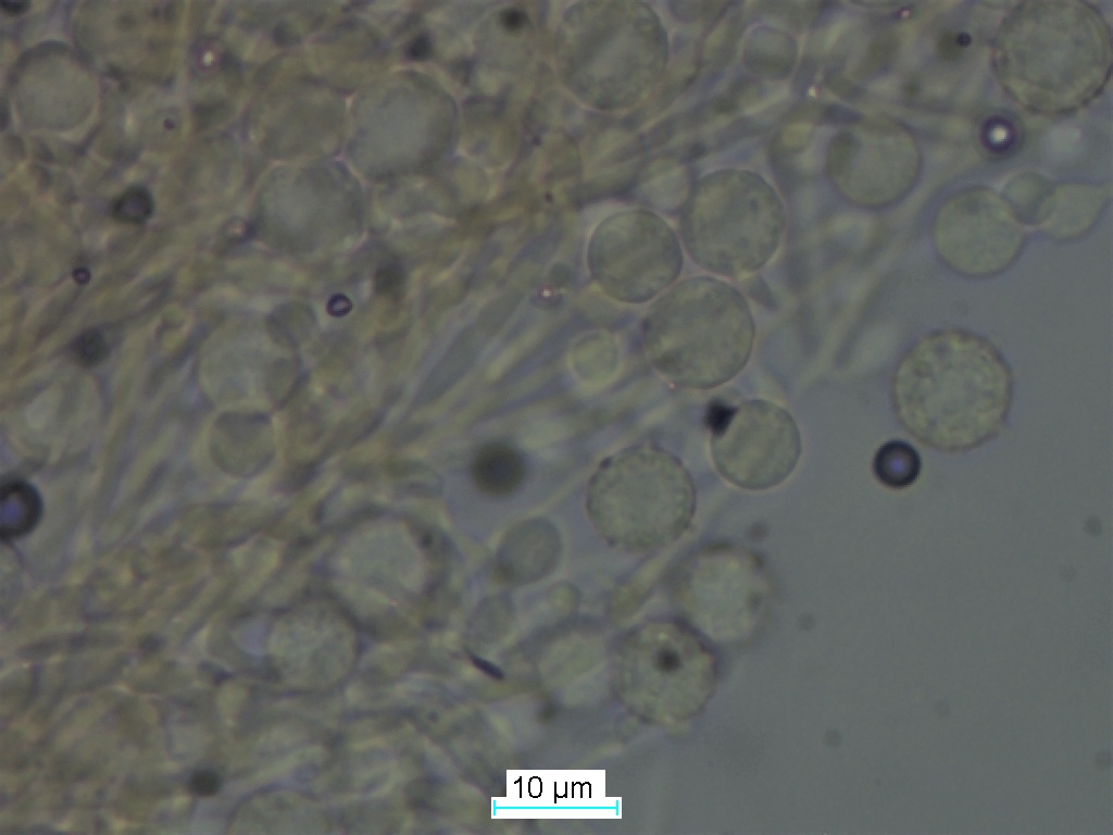 So richtig überzeugt bin ich noch nicht. Auch wenn das in meinen Mikro-Fotos nicht so gut rüber kommt, die Sporen waren auffallend gelb!! Mit Ornamenten!!