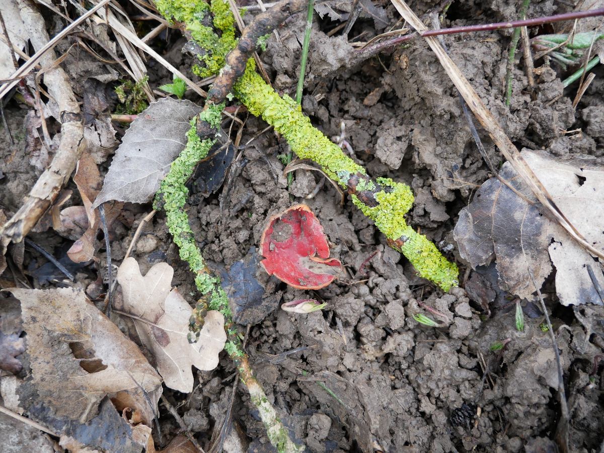 mein erster Fund von Sarcoscypha in meiner Umgebung. Am Erlenbach, Gemarkung Hohberg.