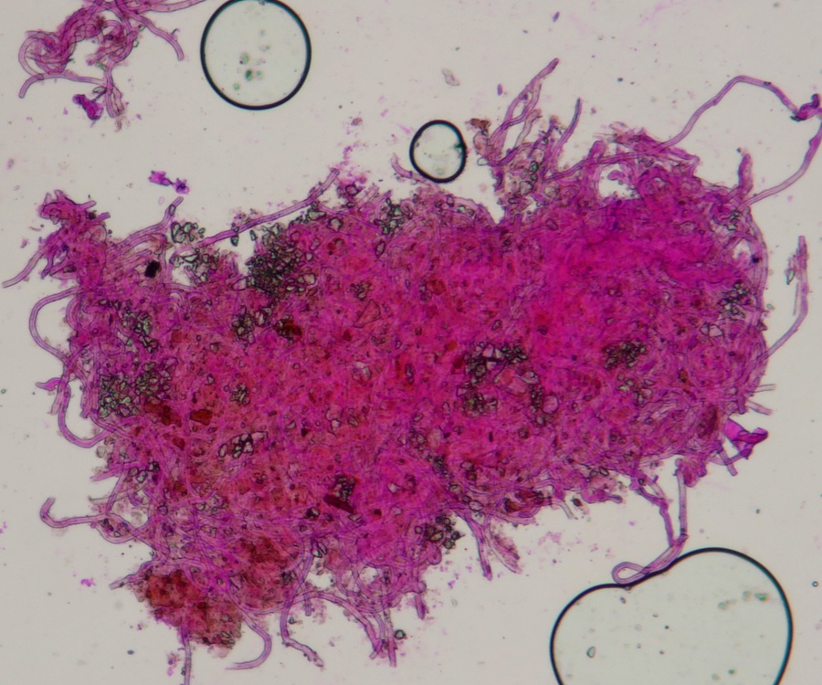 bitte diese Ascos NICHT in Phloxin mikroskopieren - alle vitalen Strukturen sterben sofort ab, was bei inoperculaten Ascomyceten das Bestimmen meist deutlich erschwert! Am besten überhaupt nichts in Phloxin mikroskopieren .... Frischmaterial von inoperculaten Ascos sollten immer in Wasser mikroskopiert werden, auch und insbesondere für das Tropfenmuster in den Sporen.
