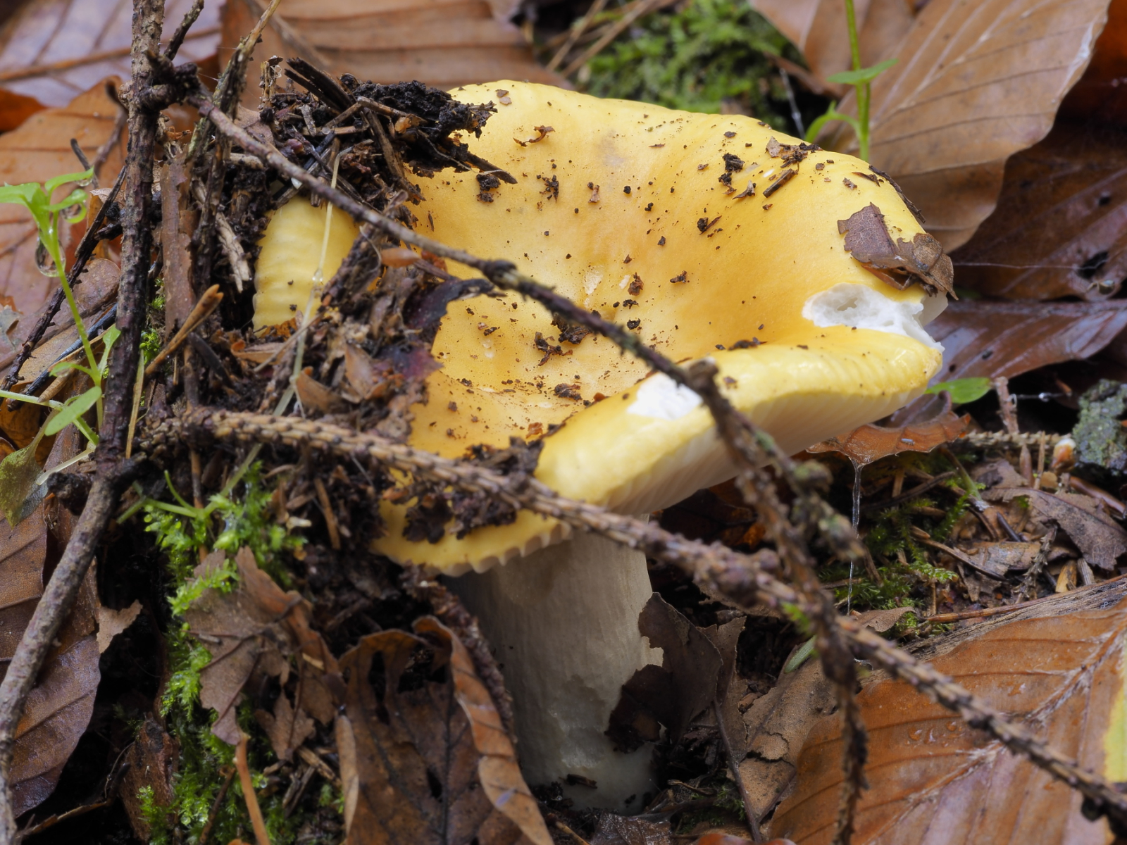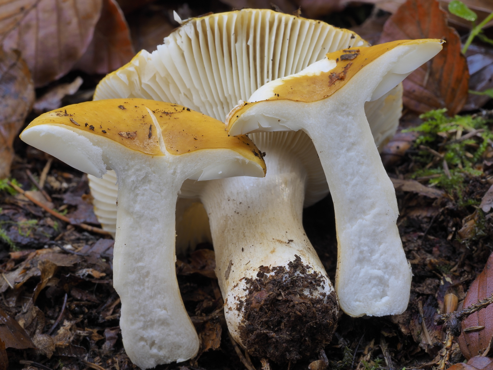 Arbeitsname: Russula ochroleuca, Weissblättriger Ockertäubling, Unter-Sektion Felleinae (Rom.)