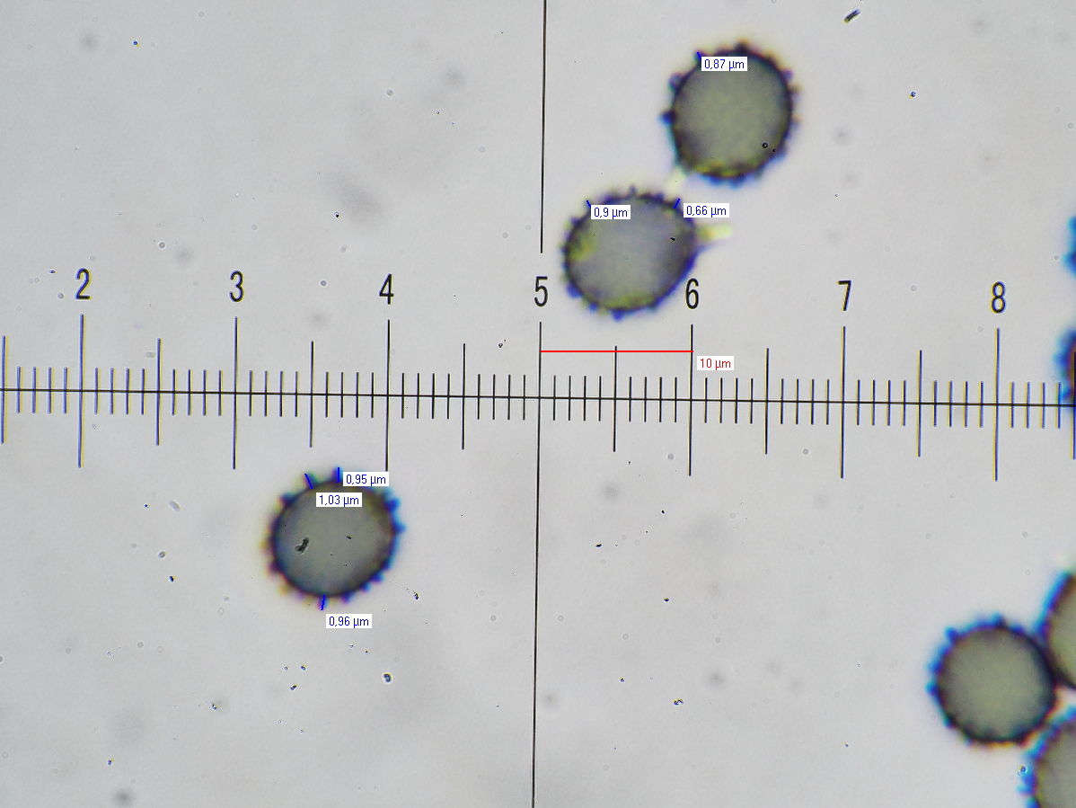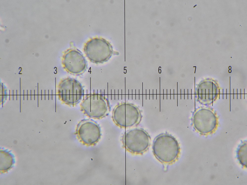 SPOREN: Sporen[95% –• 105 –• SAP –• E –• H2O(nat) ] = (6,7)6,9 - 8 - 9,1(9,7) x (6)6,2 - 7,1 - 7,9(8,5) µm
