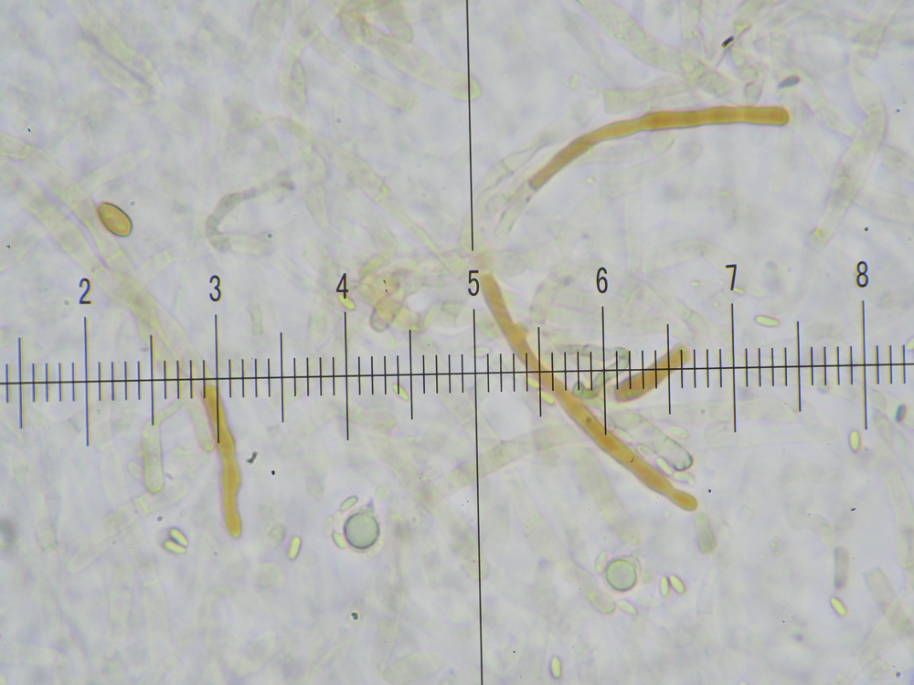 9) 400x, H2O(nat), an unterschiedlichen Stellen mit diesem Pigment, im Durchschnitt um die 5 µm breit, zylindrisch, septiert