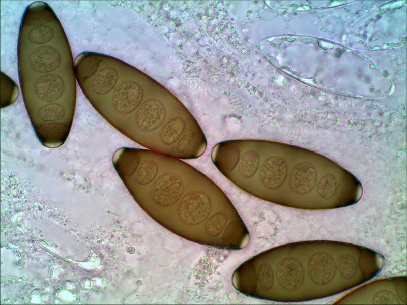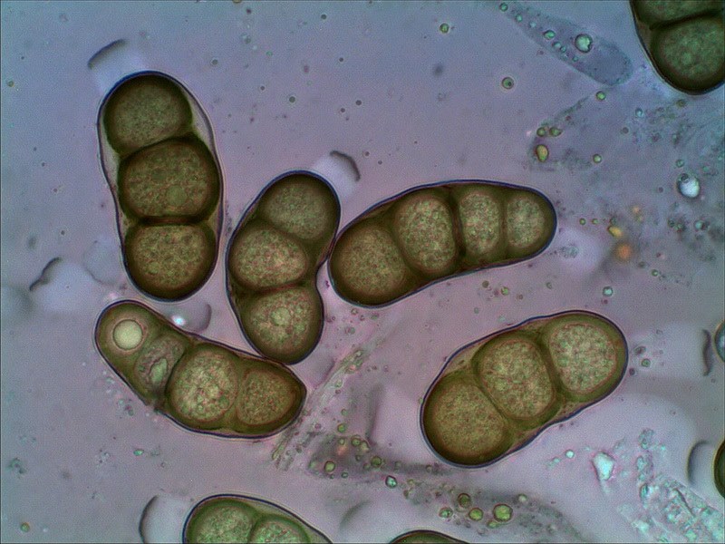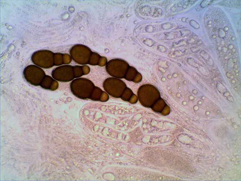 Sporen [95% –• 12 –• QPr –• v –• H2O(nat) ] = 47,3 - 53,8 - 60,4 x 5,8 - 6,9 - 7,9 µm