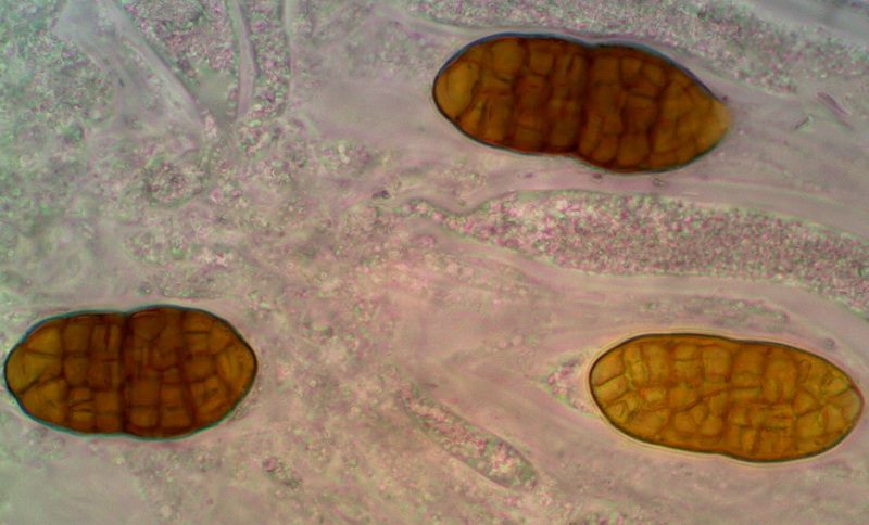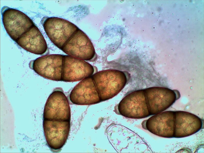Sporen [95% –• 9 –• QPr –• v –• H2O(nat) ] = 35,8 - 46,7 - 57,6 x 15,1 - 16,9 - 18,6 µm