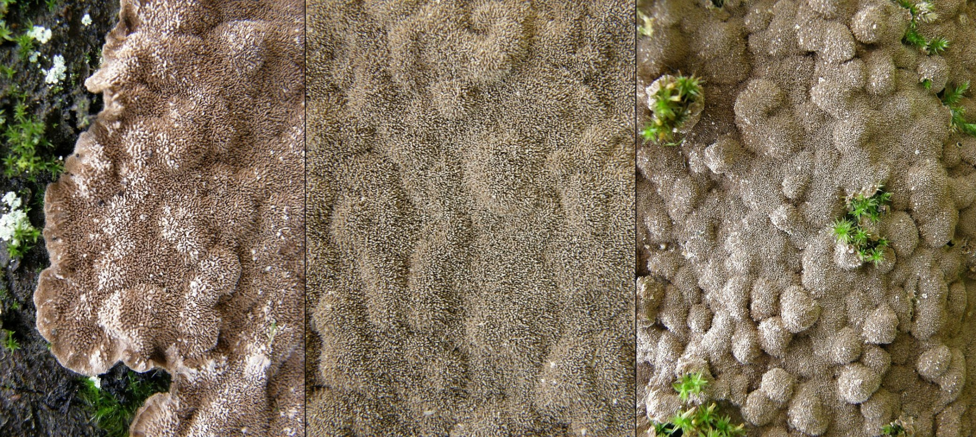 Möglicherweise ist die "Porenform" (oder ob mehr labyrinthisch-poroid bis mehr "stachelig" auch abhängig von der Wuchsweise der Fruchtkörper, also ob mehr resupinat oder mehr effus-reflex / pileat.