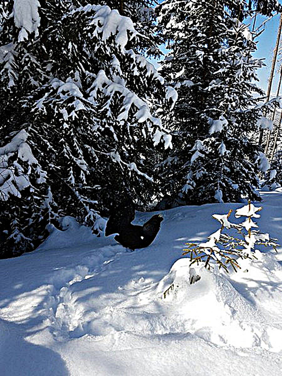 Die linken Spuren sind von M., der Hahn hat sie, flatternd niedergestreckt,