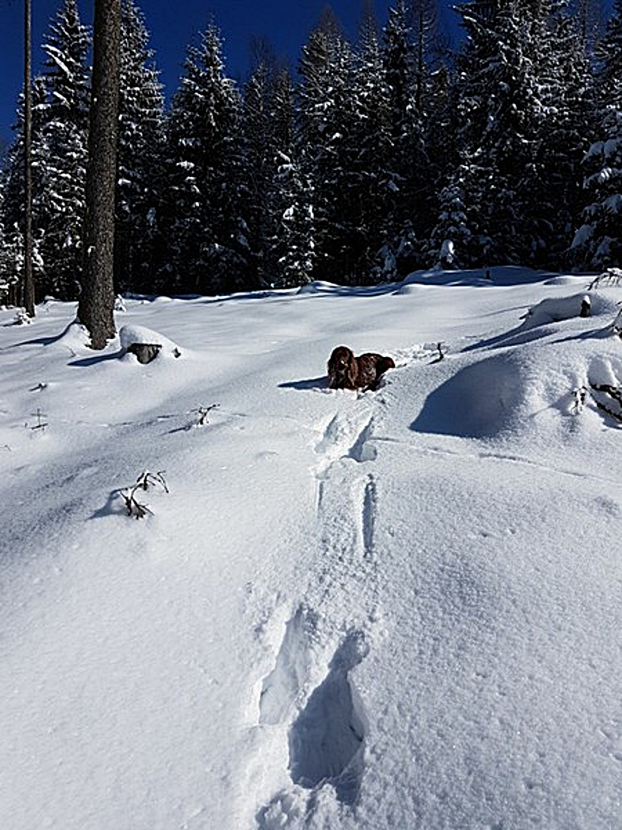 Die linken Spuren sind von M., der Hahn hat sie, flatternd niedergestreckt,