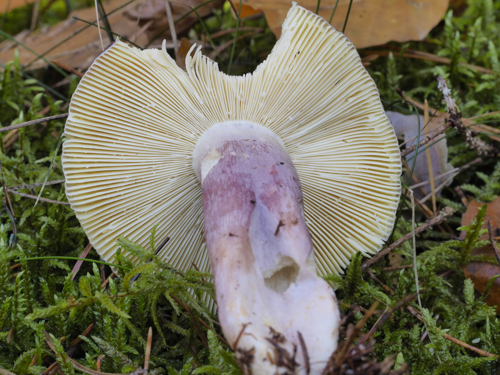 3) Lamellen blass-ocker bis gelblich, Y-Gabel und Stielgabeln, am Rand queradrig