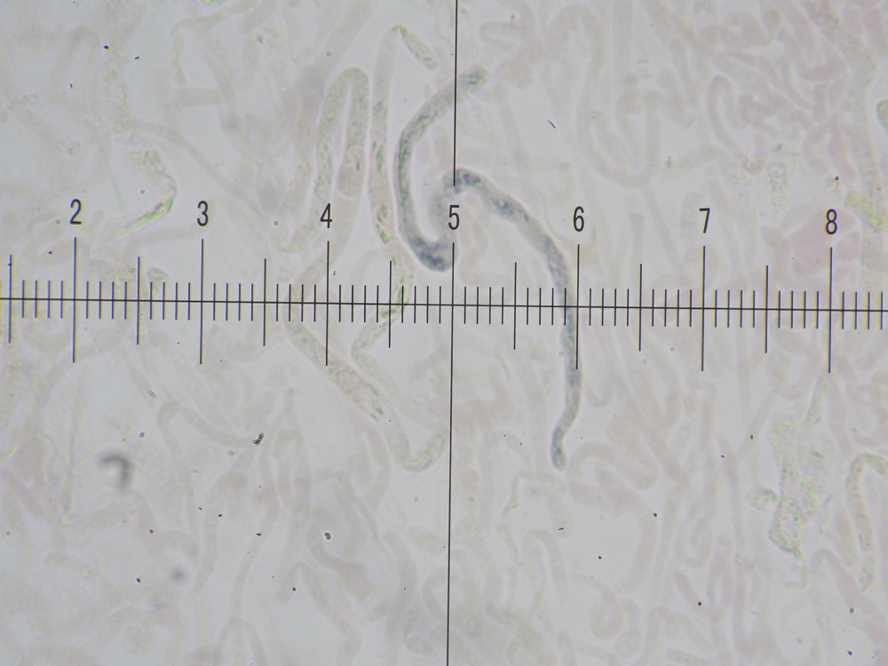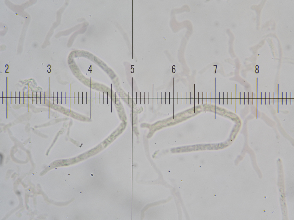 12) 400x, KOH 3%, Basidien (Sporenständer) bis 10 µm breit