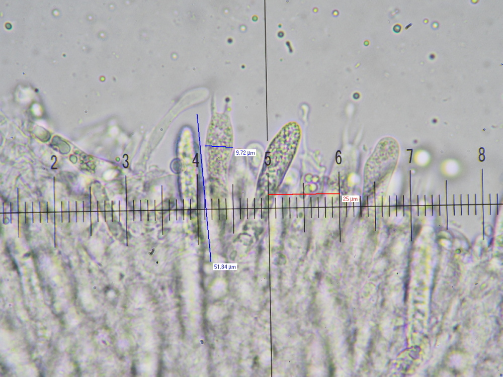 (Pleurozystiden an der Lamellenfläche, Cheilozystiden an der Lamellenschneide)