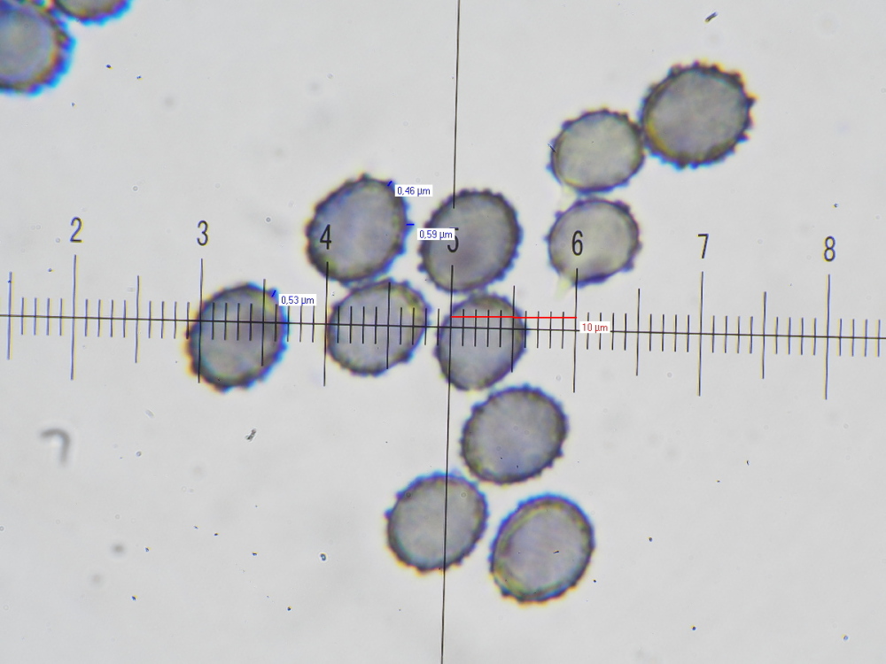 16) 1000x, Melzer, Sporenform ellipsoid, Warzen stumpf-keglig, nur max. 0,5 - 0,6 µm hoch