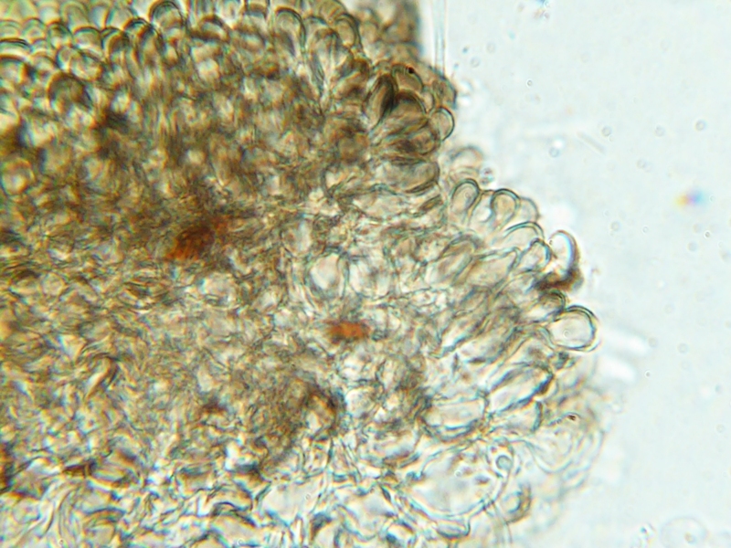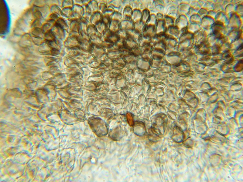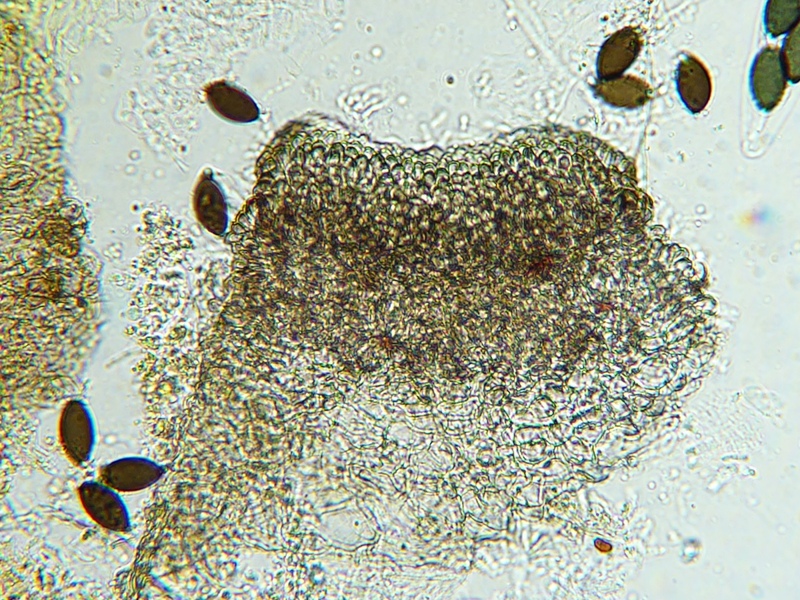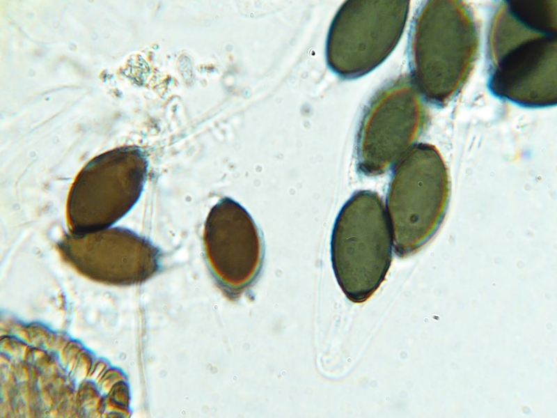 Wieder so ein Ding bei dem ich unsicher bin. zunächst als S. conicum angesprochen. Aber es fehlen Squamufolien gänzlich. Die Sporenmaße passen nicht. Keine Caudae zu erkennen. Pedicell recht kurz.
