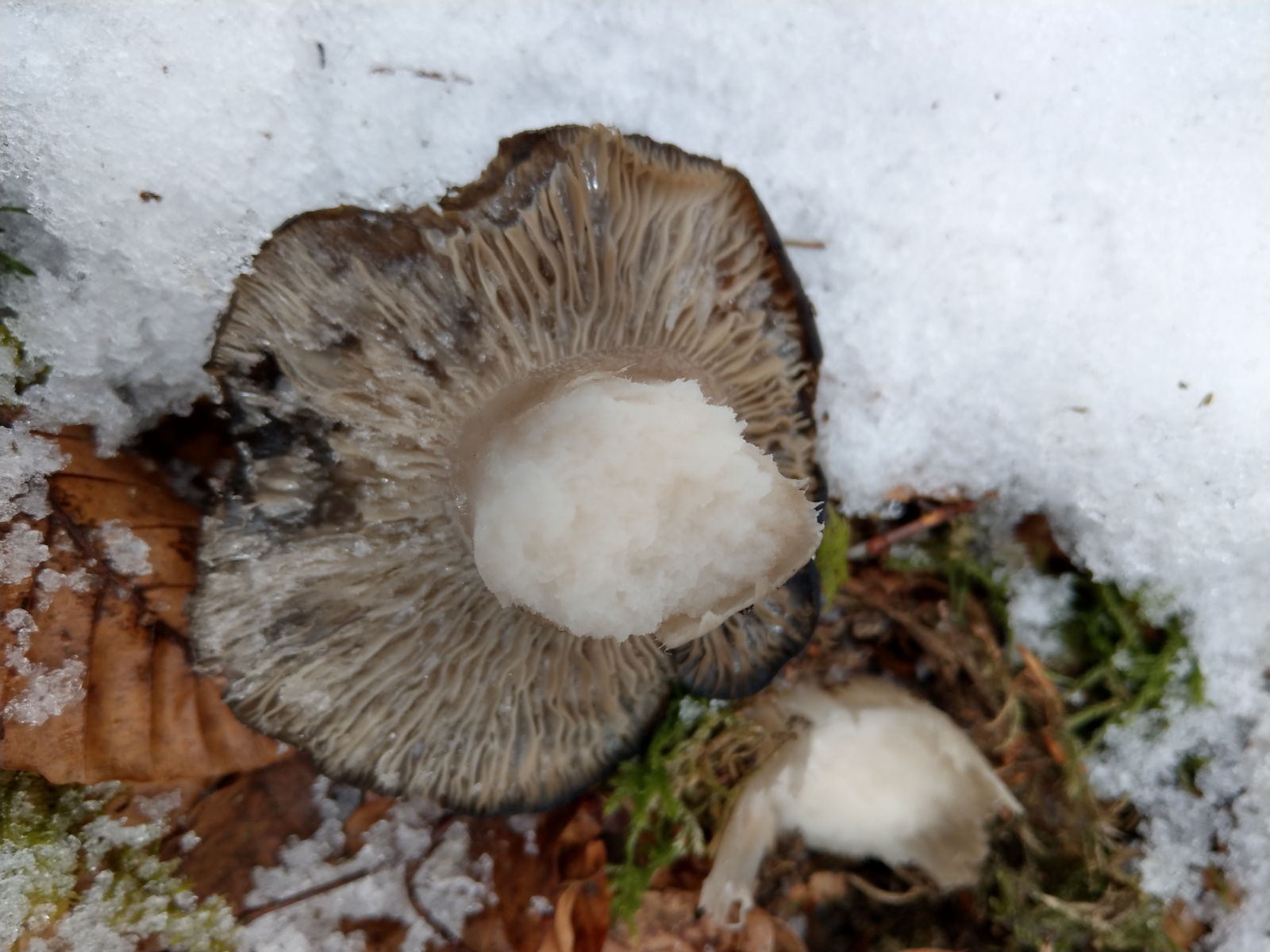 Grünspanbecherlingsholz und erfrorener Märzschneckling