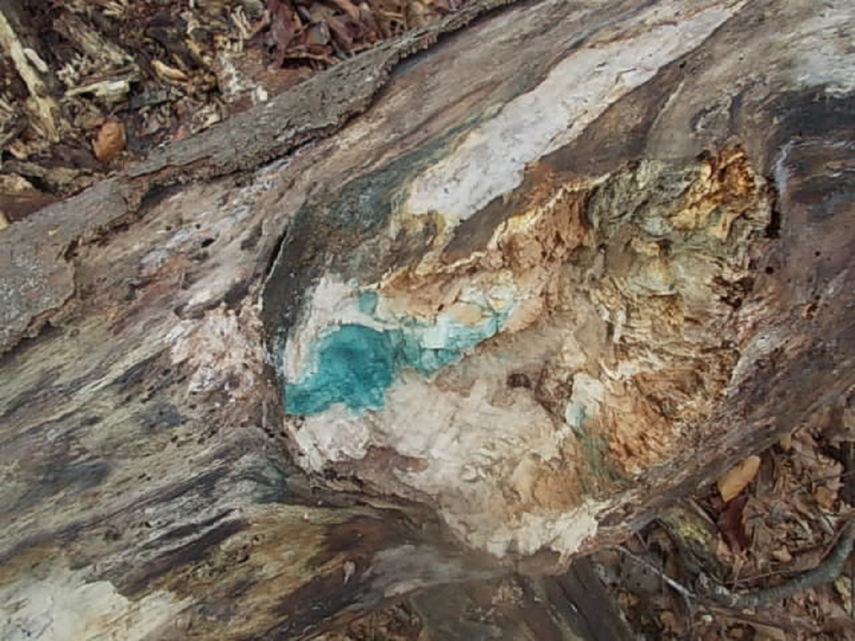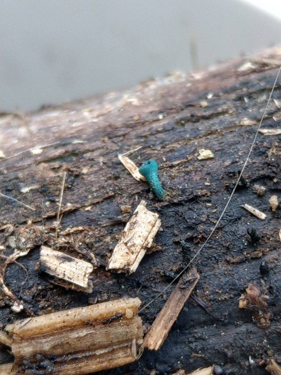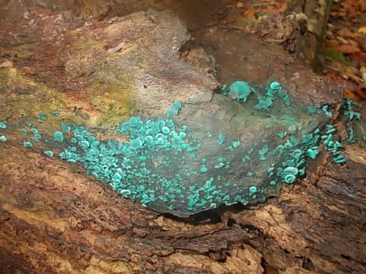 An Anfang Februar 2018 (vor 20 Tage) ich habe auch ein junge Chlorociboria Myzel an ein wunderschöne Giraffenholz stück gefunden und in Garten gelassen . Bin gespannt wie lange dauert bis erste Fruchtkörper .