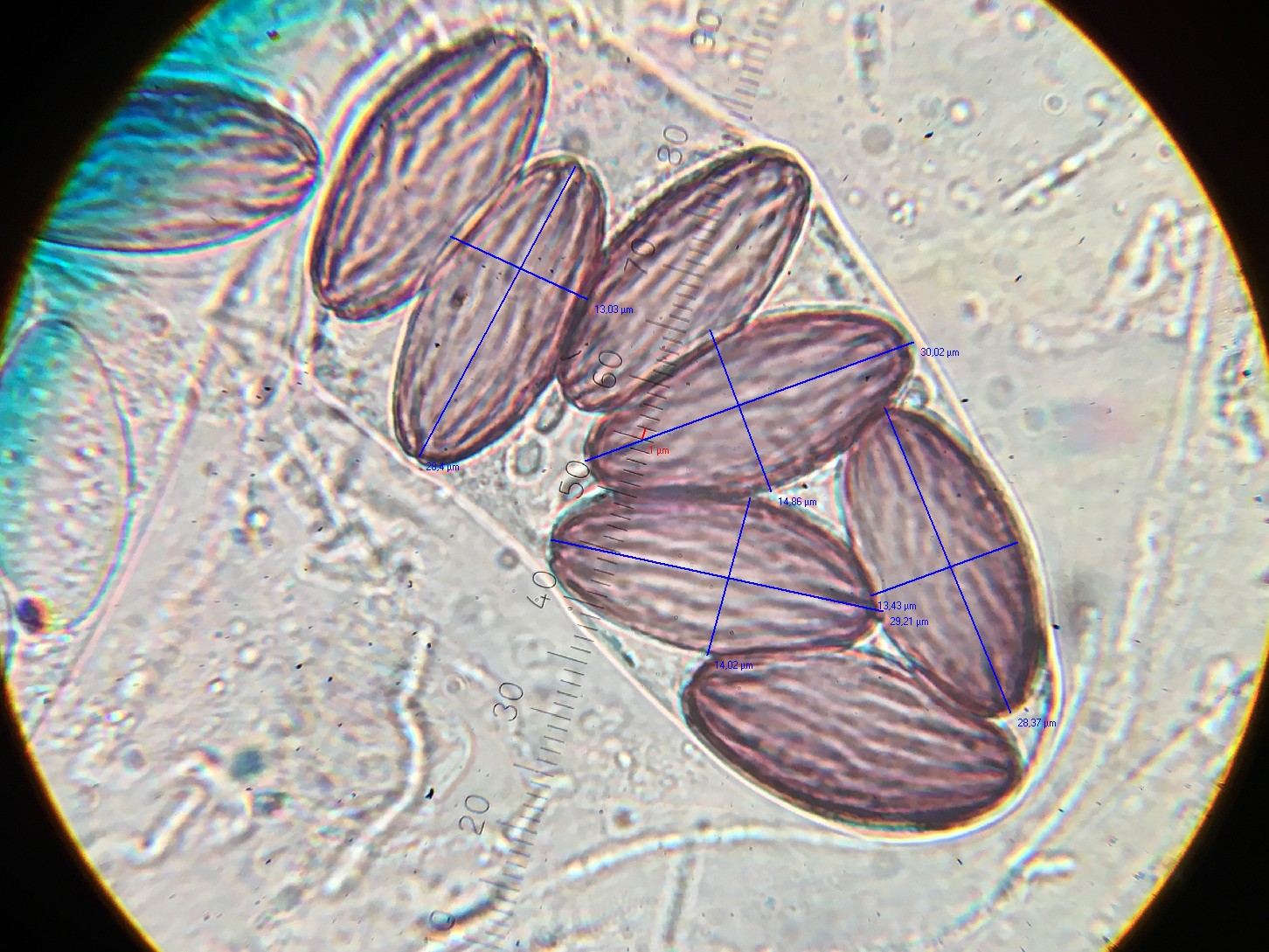 Sporen: 28,3-30,4 x 13,3-14,9 µm
