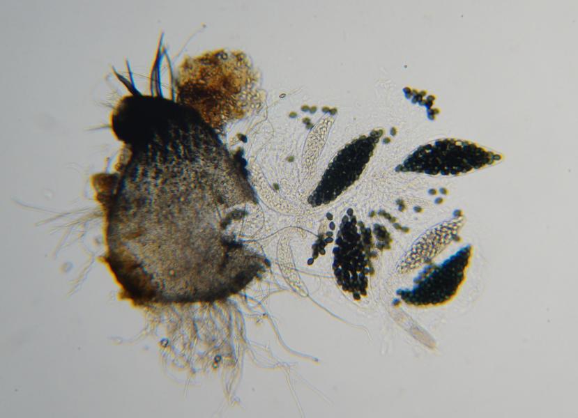 ist das Podospora setosa oder doch etwas anderes? Was mich etwas an setosa stört sind die etwas kleinen Sporen! Der Pilz wächst auf Rehlosung, die Asci messen ca. 200 x 50 - 60 µ, die Sporen messen ca. 15 - 16 x 11 µ, Pedicel ca. 10 x 3 µ, Seten ca. 120 x 4 µ septiert.