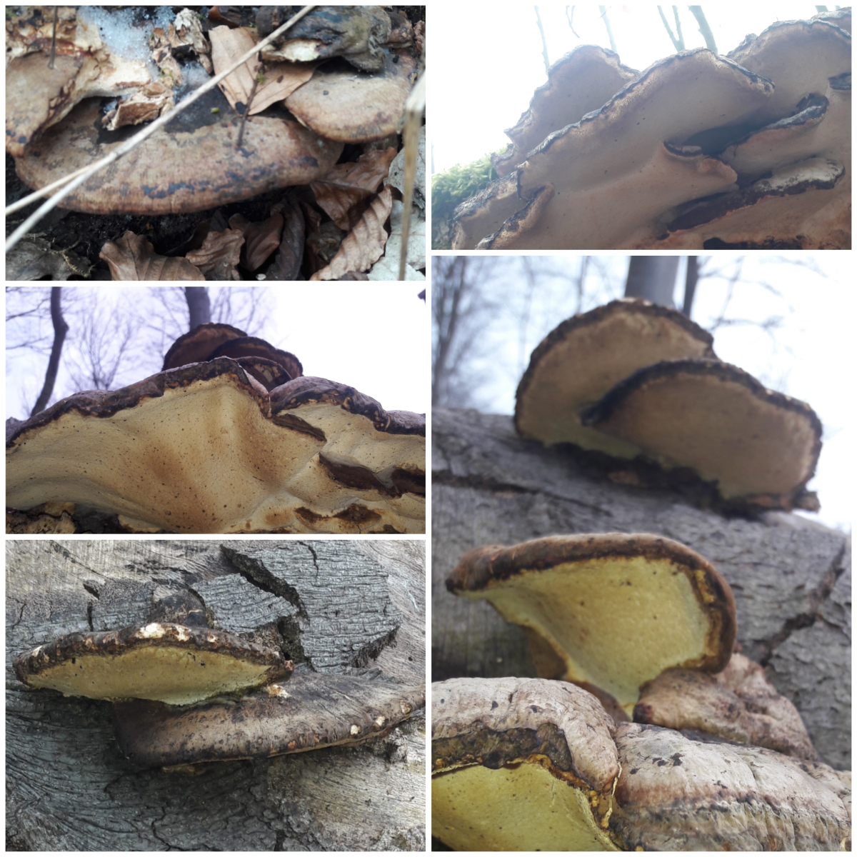 4 ist eine prima Collage von >Buckeltrameten<. Wenn sich nicht irgendwo eine >Striegelige< drunter gemischt hat, die könne auch mal durcheinander wachsen, dann muss man gut auf die Unterseite achten.