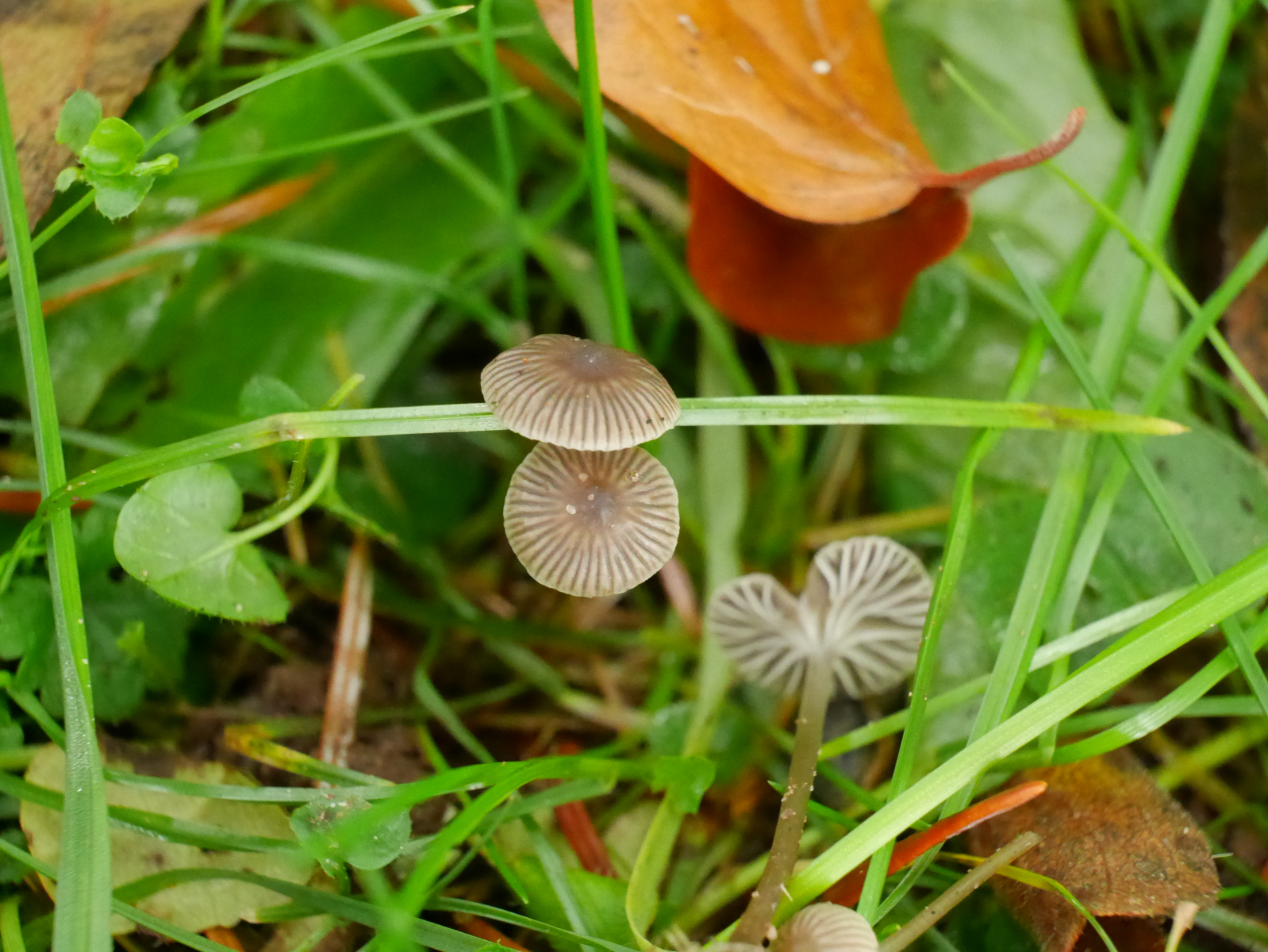 Mitte Oktober des letzten Jahres fand ich diese Helmlinge auf einer feuchten vermoosten Wiese auf sandigem Untergrund ganz in der Nähe eines Baches. Vielleicht hat jemand von Euch Erfahrung mit solchen kleinen Helmlingen und kann aus den drei von mir im Bestimmungsversuch ermittelten Arten die ein oder andere ausschließen oder neue ins Spiel bringen: