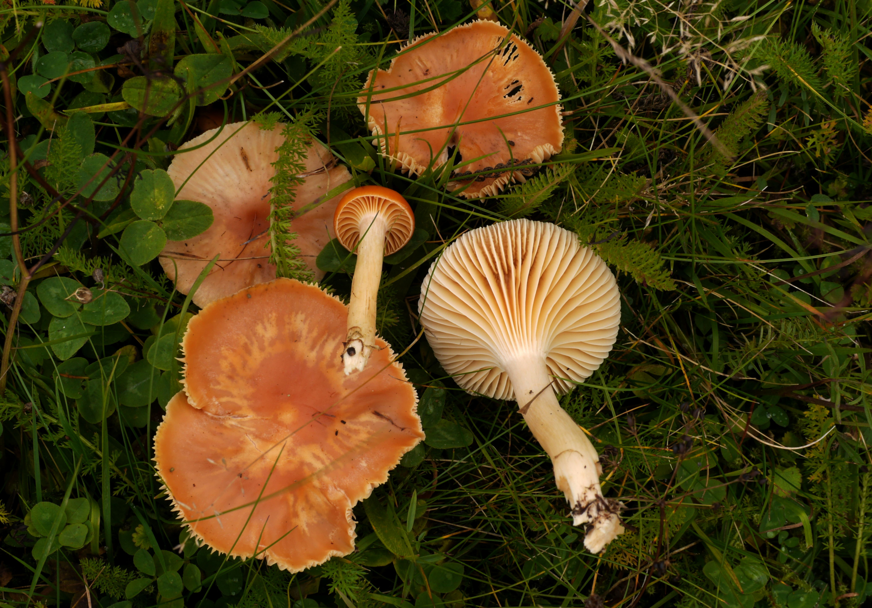 Ich ärgere mich gerade, in meinem noch zu sortierenden Chaos keine Bilder von mutmaßlichen var. fuscescens zu finden; Ellerlinge mit brauner Mitte sind mir auch begegnet. Nächste Saison werde ich die Cuphophylliden aber mal gezielt und sauber dokumentieren!