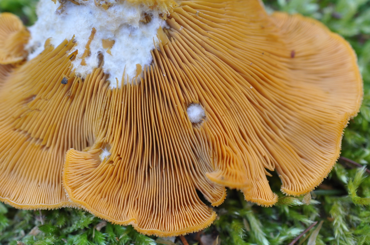 Tremella mesenterica , junge und noch sehr kleine Fruchtkörper
