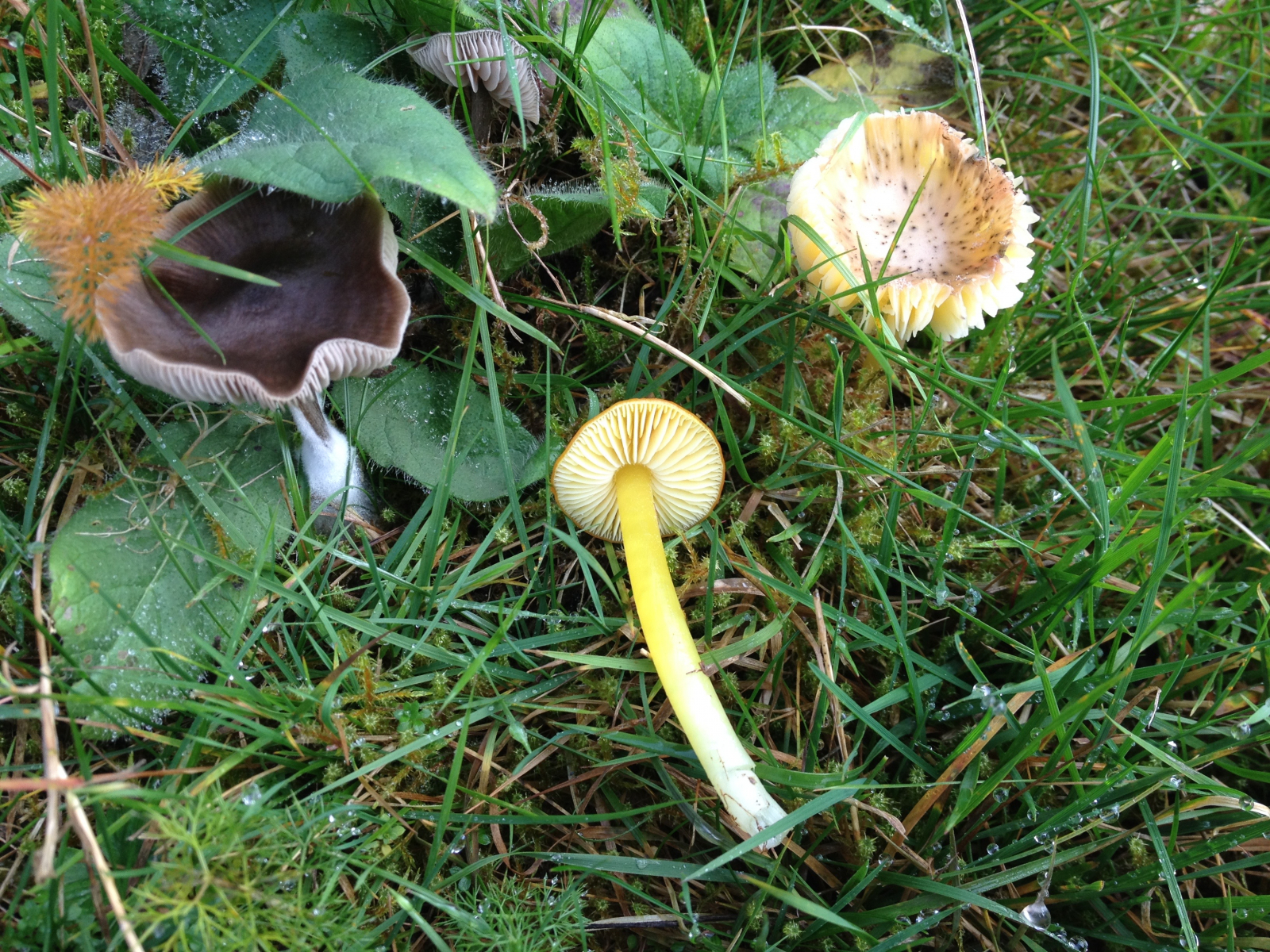 im Eifer des Saftlingsgefechts sind mir im Herbst ein paar Pilzlein durch die Lappen gegangen. Sie standen einträchtig mit den farbenprächtigen Saftlingen auf der Wiese. Durch den Pilzüberfluss und ihre weniger spektakuläre Färbung habe ich sie "übersehen", dabei sind sie eigentlich ganz hübsch. Jetzt beim Sortieren stelle ich fest, dass ich nichts über sie weiß. Gehören sie zu den Saftlingen/Ellerlingen, oder ist das etwas ganz Anderes? Informationen über Geruch etc, habe ich leider nicht.