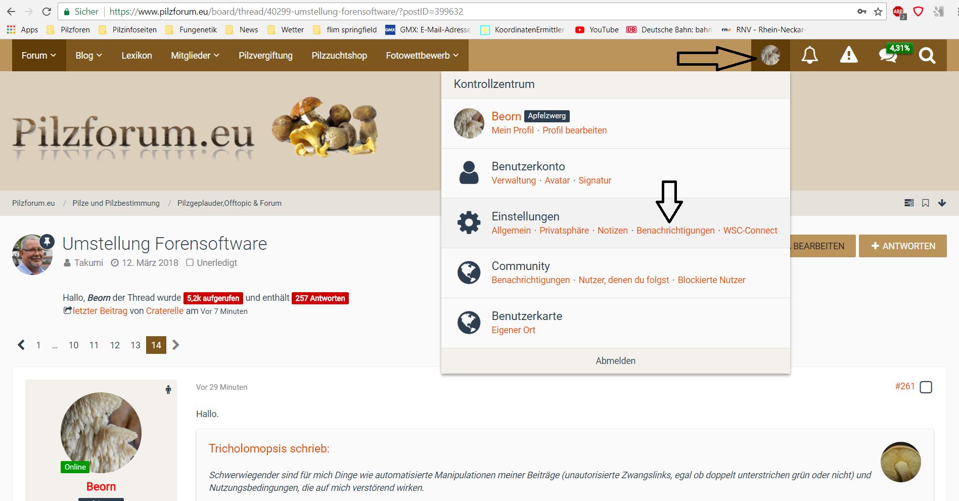 Die Einstellungen hier im Forum habe ich alle aktiviert gelassen, allerdings auf "keine e-mail-Nachricht".