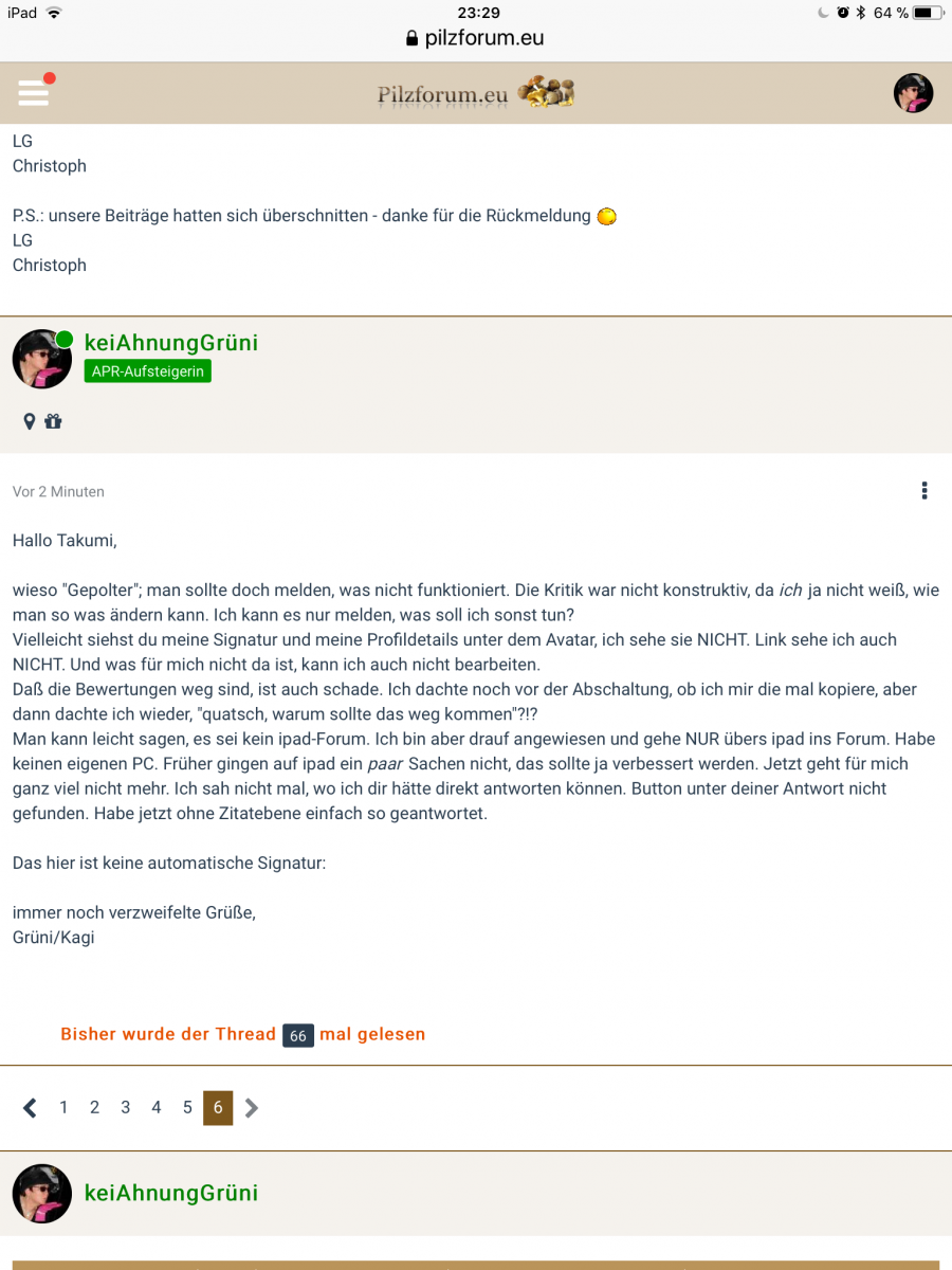 - Womit ich beim nächsten Thema bin. In der Vorschau konnte ich in der Vergangenheit meine Themen so sehen, wie sie nach dem Abschicken auch im Forum zu sehen waren.