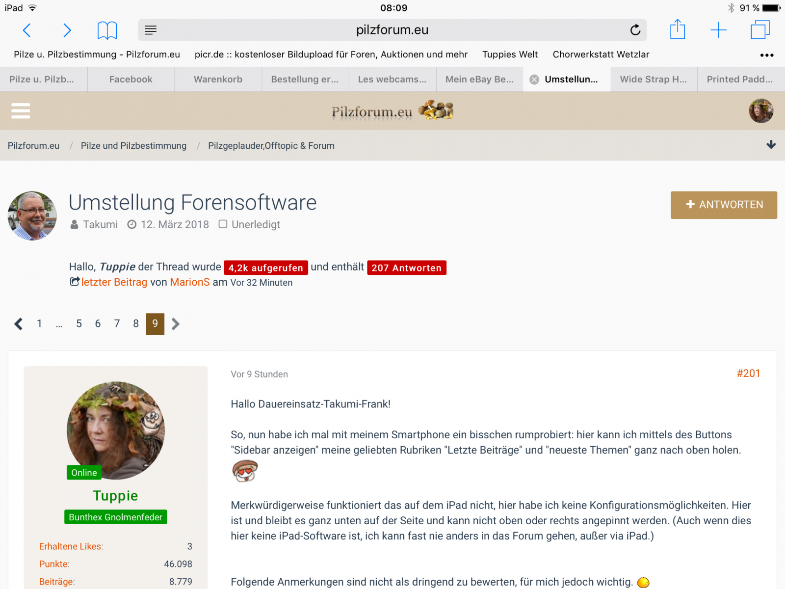 ich benutze auch fast nur das iPad, sehe jetzt aber keine großen Probleme damit (außer vielleicht die Umlautdarstellung). Die Unterseiten „Unerledigte Themen“ und „Ungelesene Beiträge“ habe ich als Favoriten in der Lesezeichensymbolleiste. Übrigens findest Du unter Deinem Avatar ganz rechts oben einen kleinen Pfeil, der Dich zum Ende der jeweiligen Unterseite und somit auch zu den „Neuen Themen und Neuen Beiträgen“ führt.