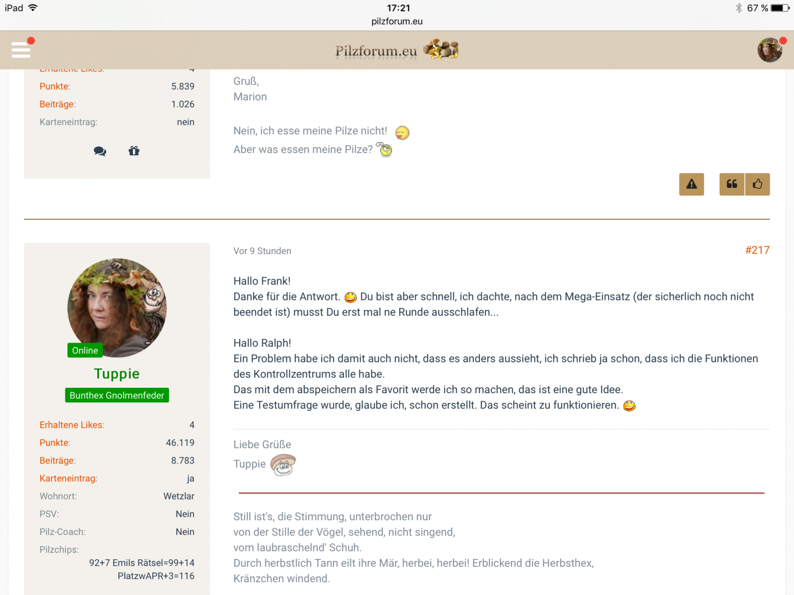 zur Zeit alles normal im eingeloggten Zustand, einmal ok. ist ok. (man findet auch unter den gelisteten cookies das Pilzforum-Cookie.)