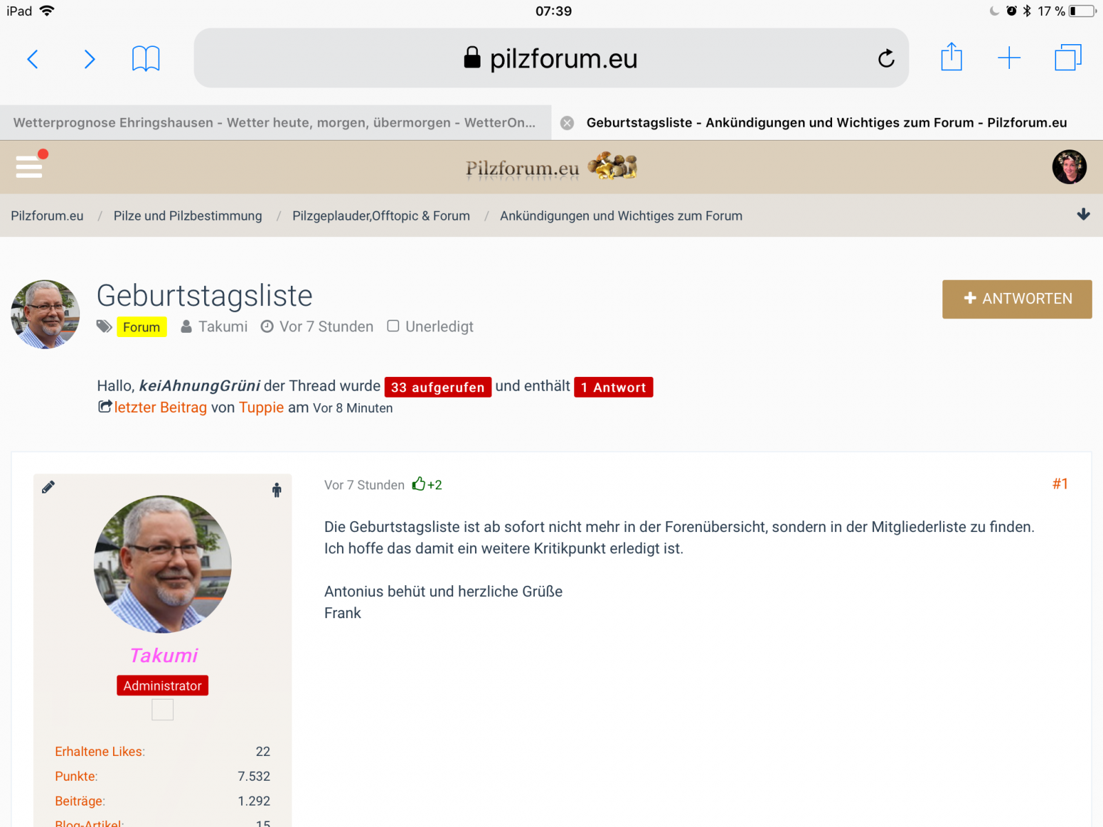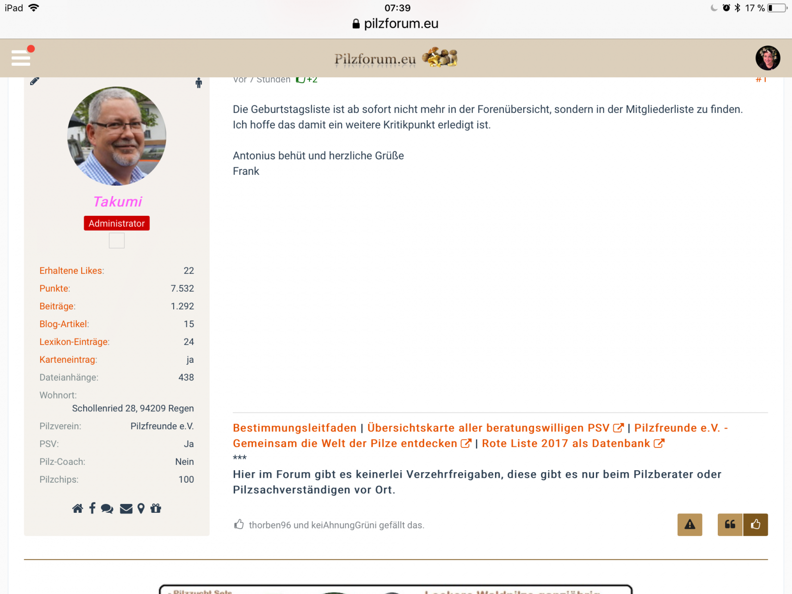 OK, ich bin hier eh nur ein kleines und unbedeutendes Licht, aber u.a. auch wegen der angesprochenen Punkte inzwischen kaum noch aktiv hier. Ich warte gespannt ab, wie sich das bis zur "Haupt-Pilzsaison" weiterentwickelt...