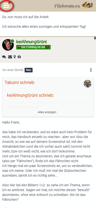 Also hier bei den Bildern 1+2: so sehe ich ein Thema, wenn ich es anklicke. Sagen wir mal, ich möchte dieses "bewußt" abonnieren, ohne eine Antwort zu schreiben. Wo ist das Fähnchen?