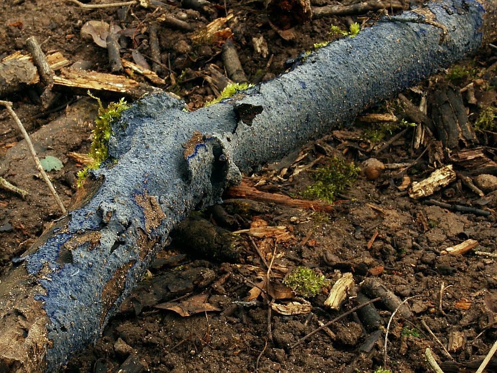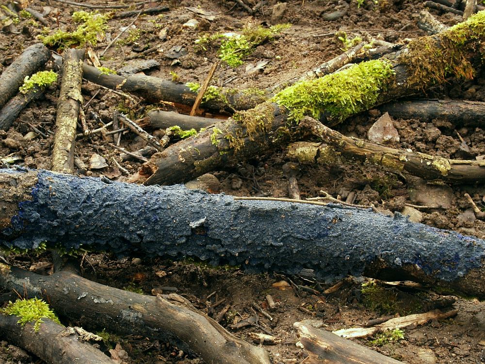 Am gleichen Standort gab es unglaubliche Mengen von blauem Holz :) . Blauer Rindenpilz (Terana caerulea)