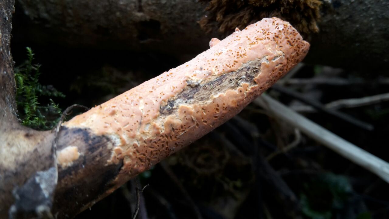 8. Peniophora incarnata Fleischroter Zystidenrindenpilz