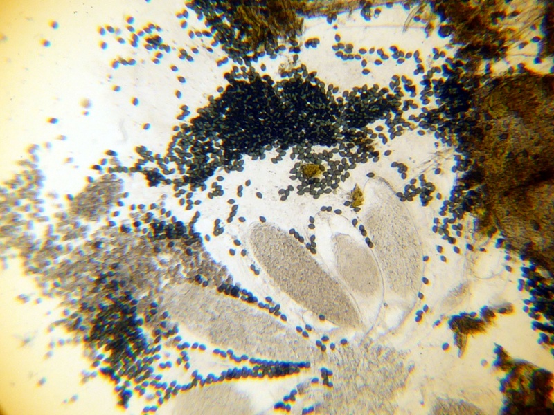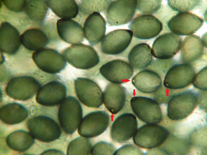 Perithecium ohne Seten, aber mit tuberculoiden Haaren. Asci deutlich über 256 Sporen, vermutlich 512. Sporenmaße um 16 x 11 µm, Pedicell um 8 x 4 µm. Apikale und Basale Caudae vorhanden. Subapikaler Keimporus.