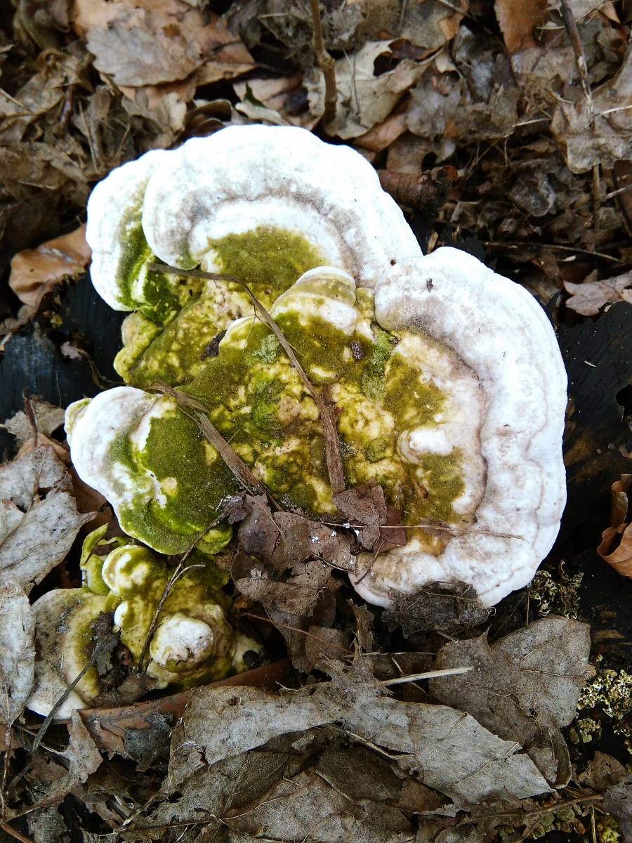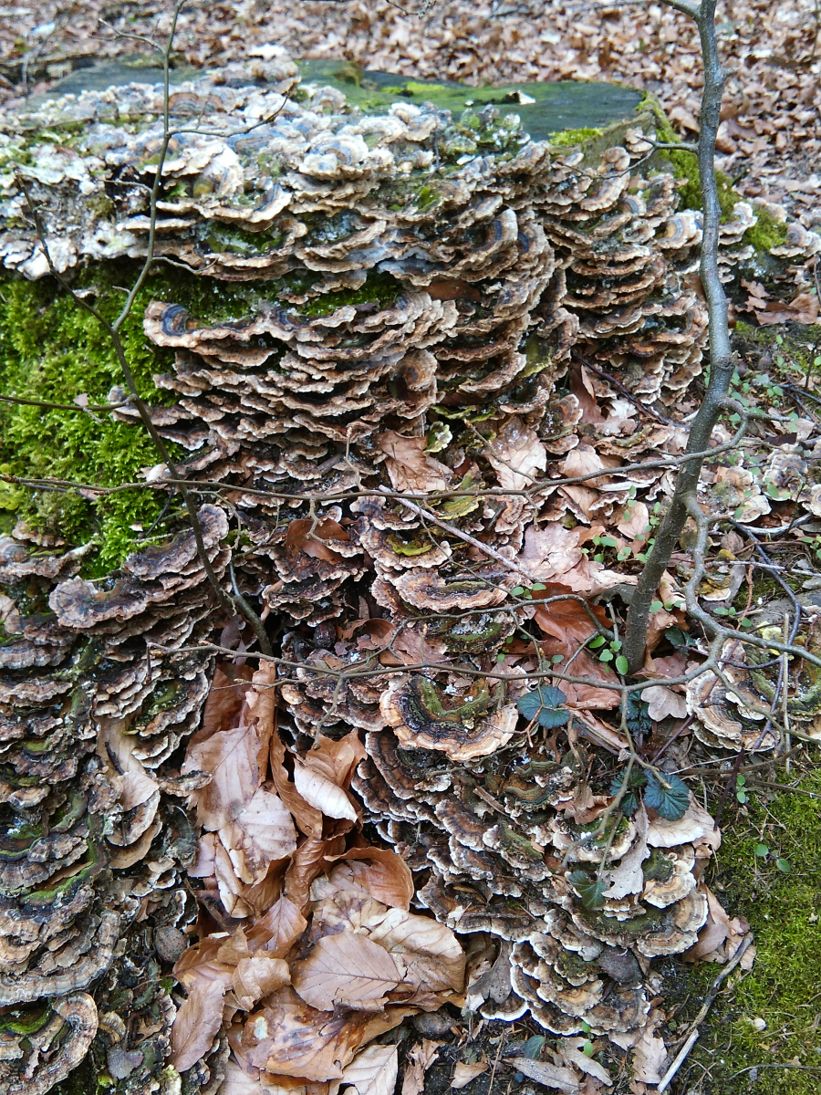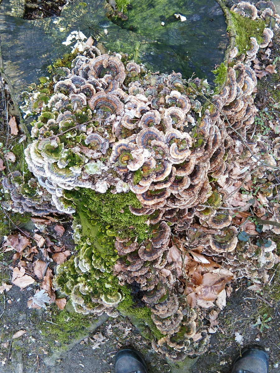 Dann habe ich hier noch eine Vielzahl an kleineren weißen Baumpilzen, die sich eigentlich immer an den abgesägten Baumstümpfen im Wald fanden: