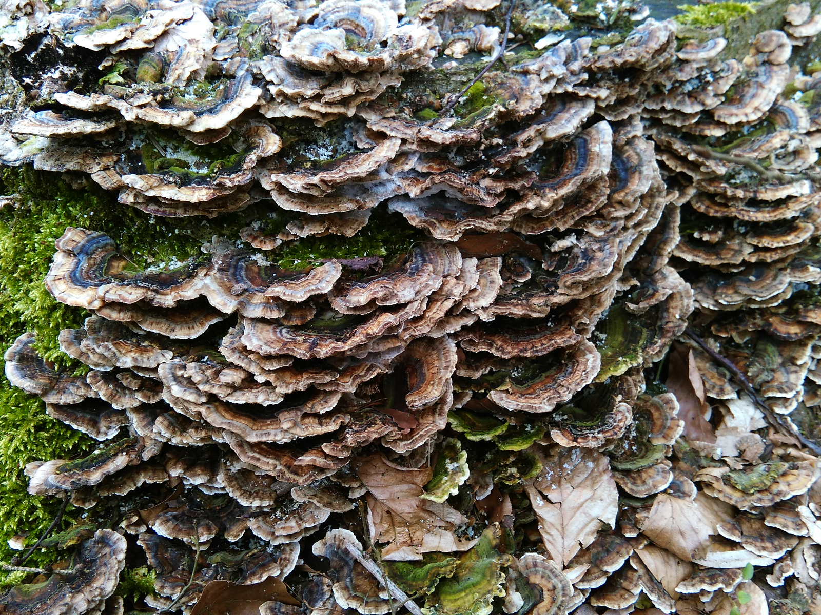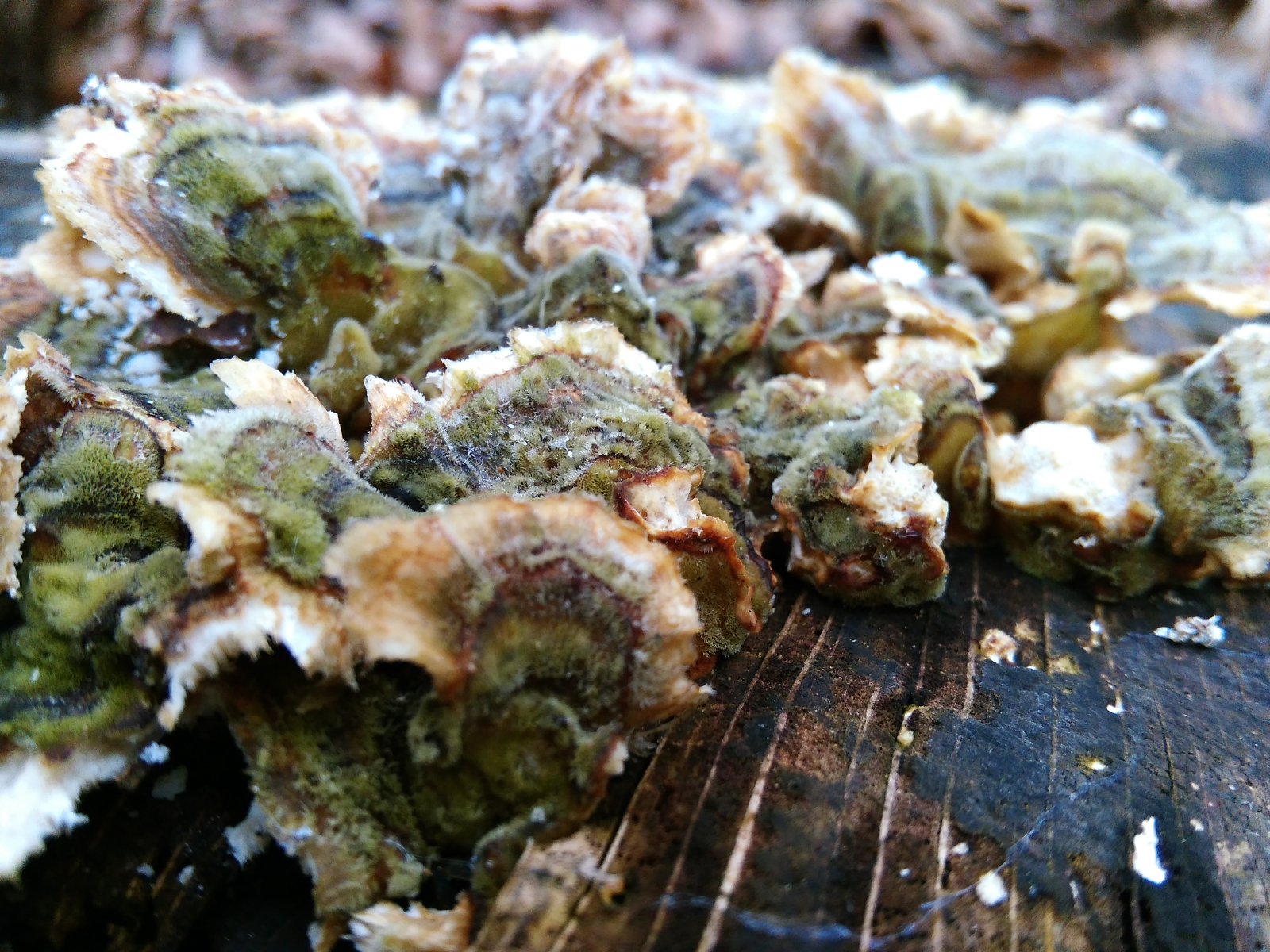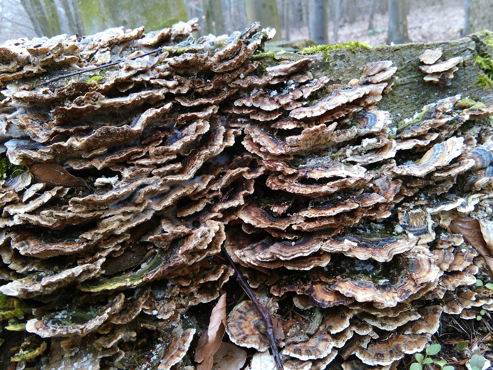 Dann habe ich hier noch eine Vielzahl an kleineren weißen Baumpilzen, die sich eigentlich immer an den abgesägten Baumstümpfen im Wald fanden: