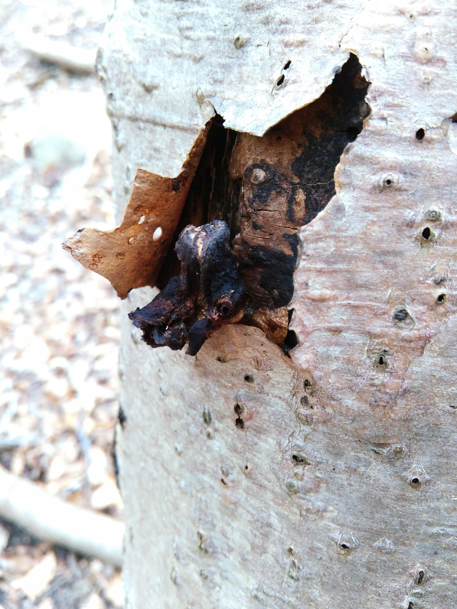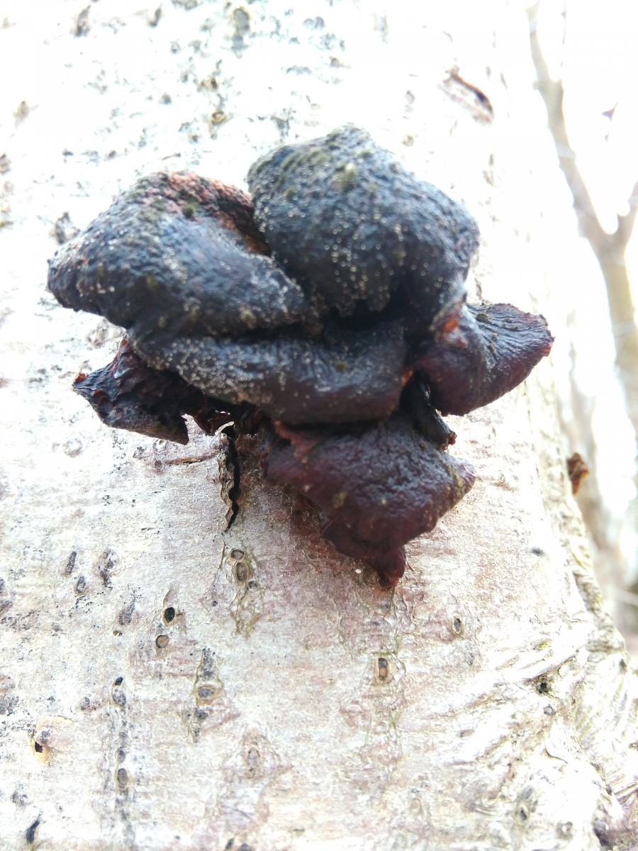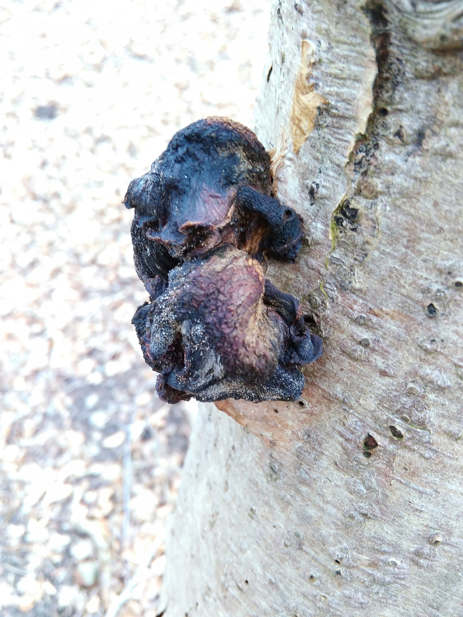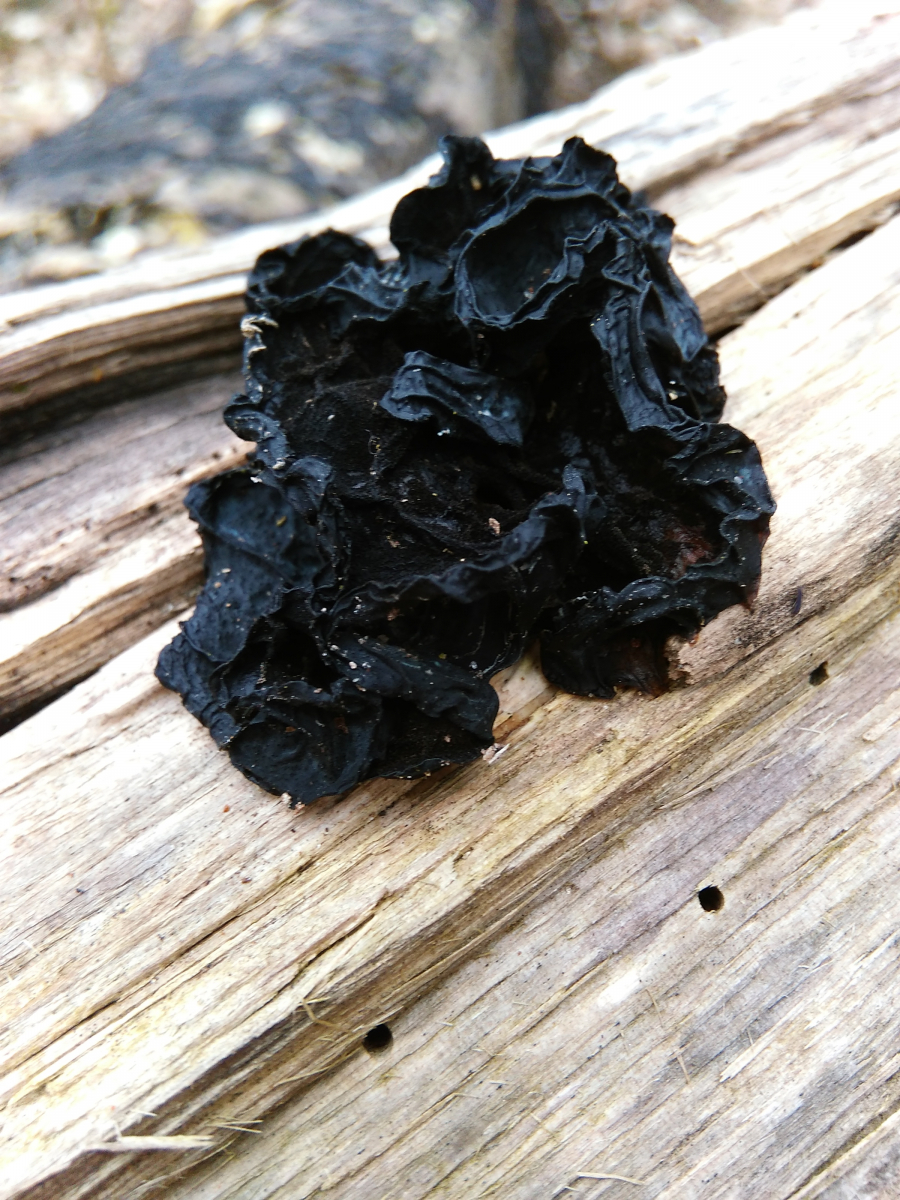 Zuletzt noch ein dem Judasohr ähnlicher, aber viel schwärzerer Pilz, der mich an einen Zitterling erinnert: