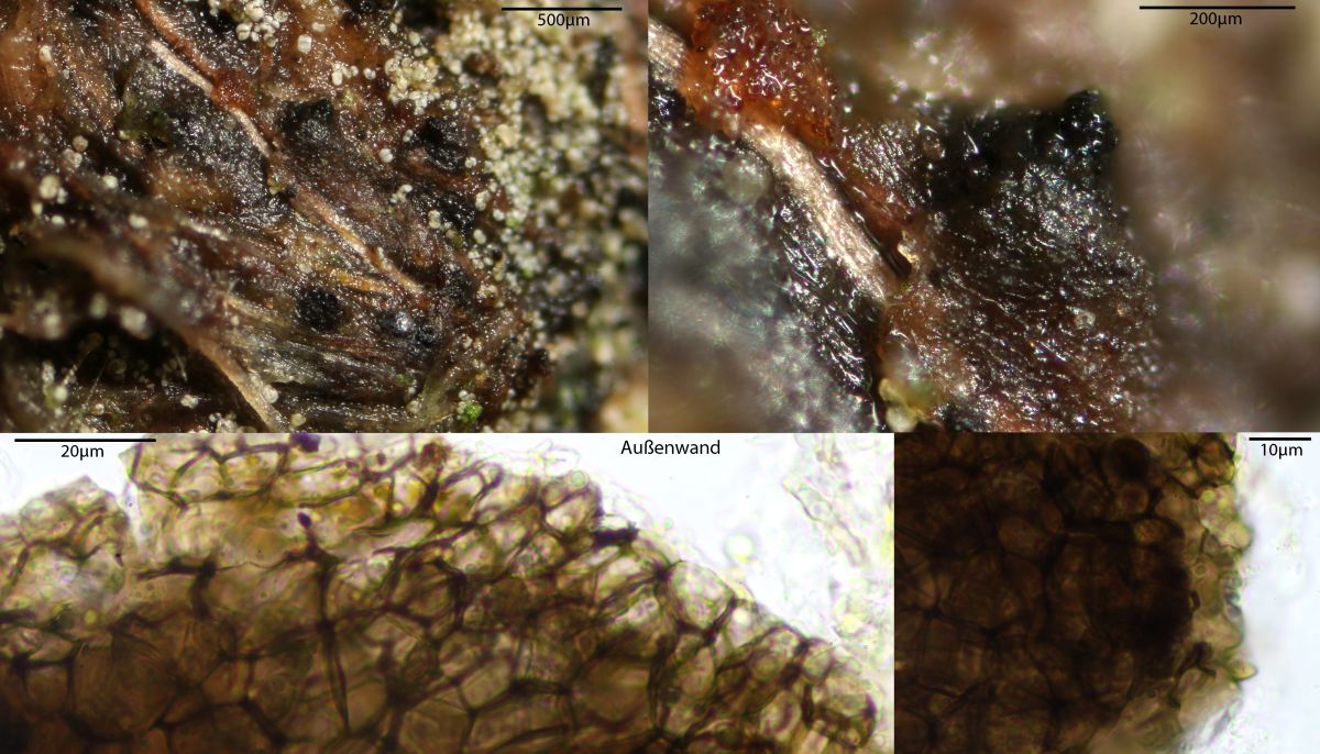 Obwohl die Sporengröße etwas über der in der Literatur angegebenen liegt, komme ich hier auf S. octomera. Dass die Sporen recht lang sind, schiebe ich mal auf das Alter, denn es haben viele Einzelzellen bereits einen deutlichen Abstand zu den anderen, was die Gesamtlänge natürlich erhöht. Von der Sporenform her (dritte Zelle verdickt, Endzellen langgestreckt) passt das ja auf octomera, ebenso die Tatsache, dass die Sporen im Alter leicht zerfallen.