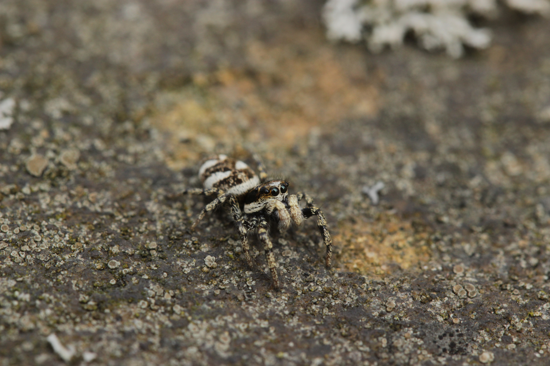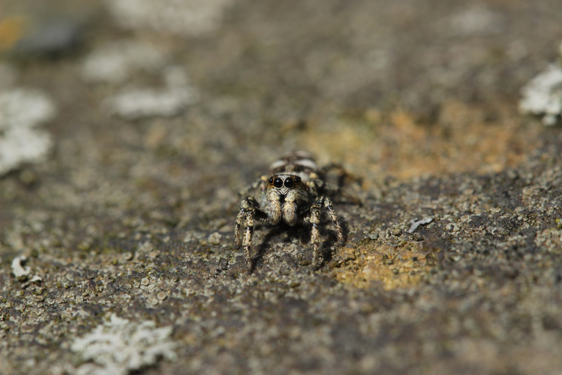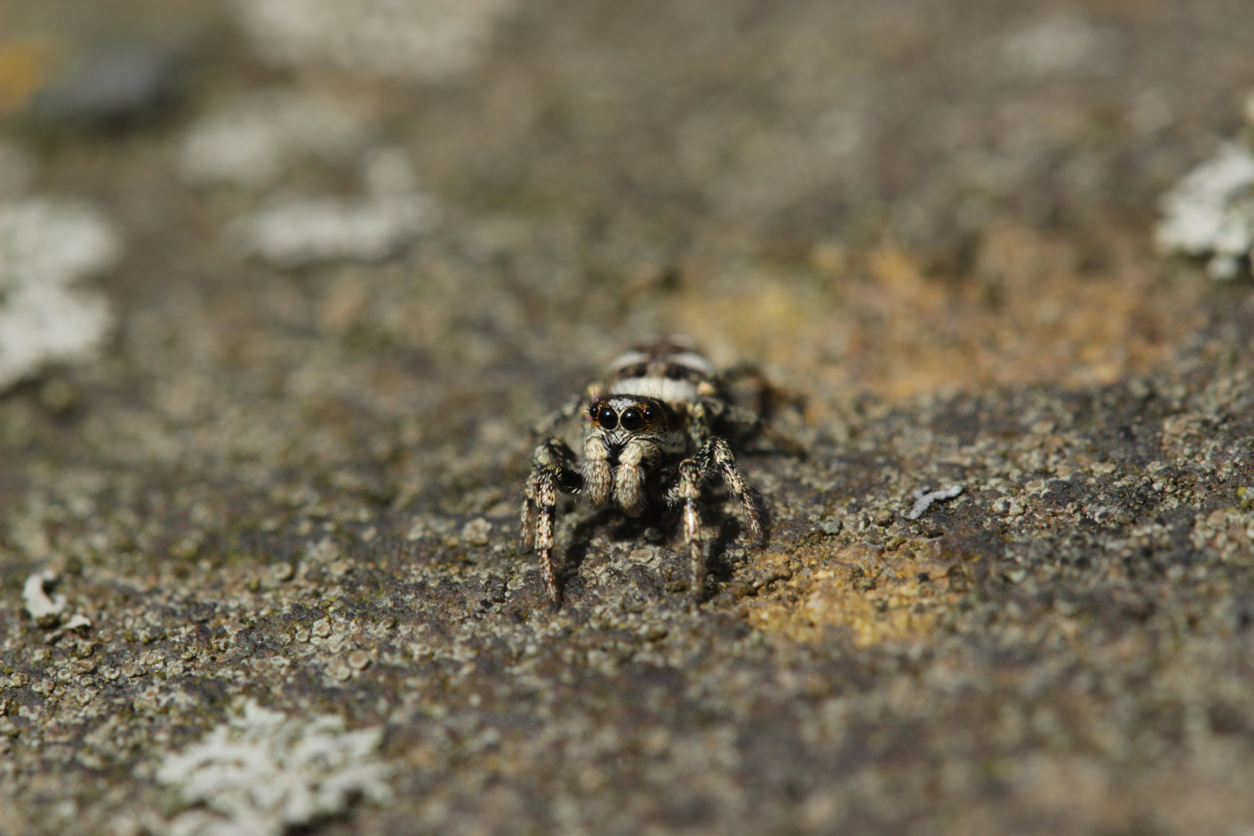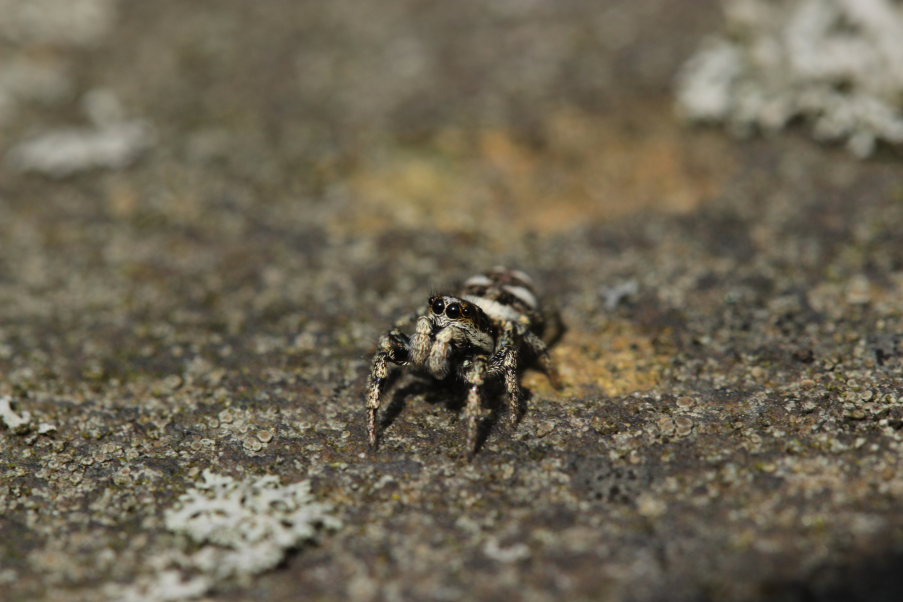 Auf der Friedhofsmauer lauerte dann noch diese süße kleine Springspinne: