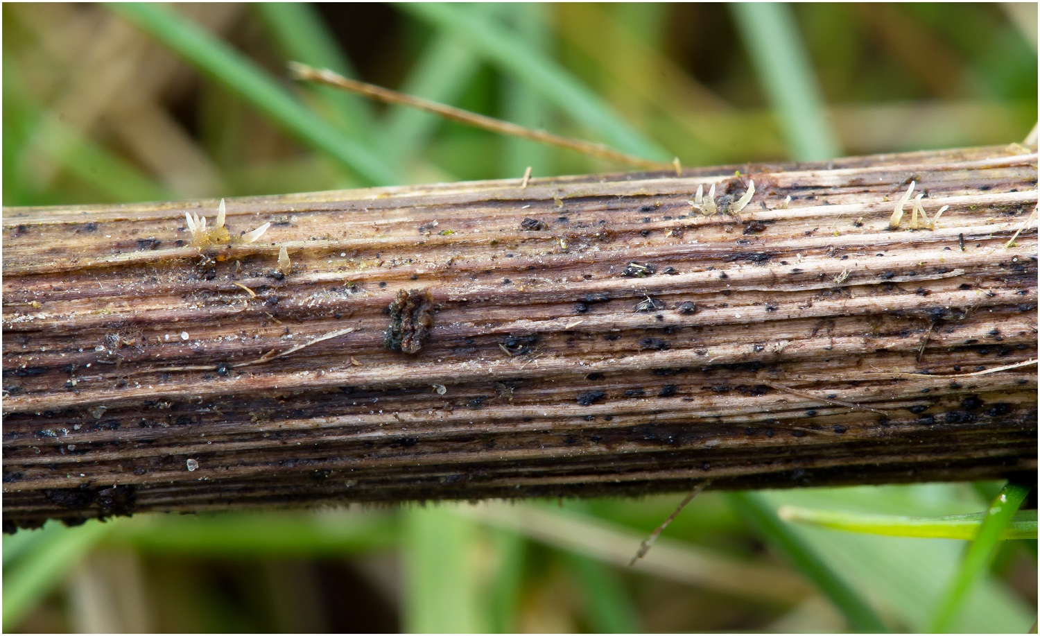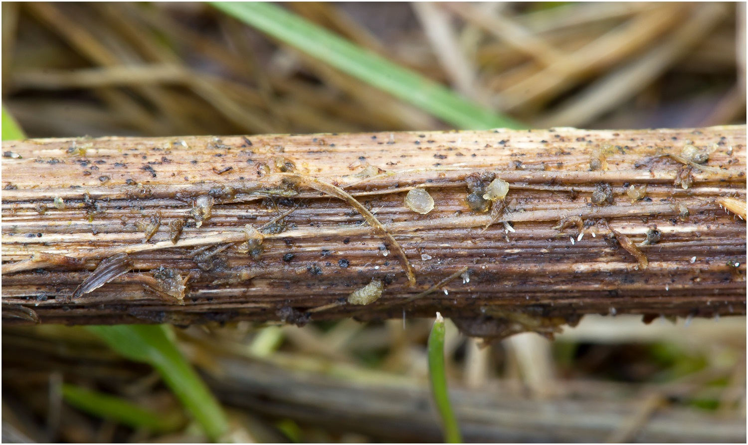 Jetzt möchte ich euch einen Befall an Eupatorium sp. (Wasserdorst) zeigen, wo die Isaria friesii auch auf einem Kernpilz wächst.