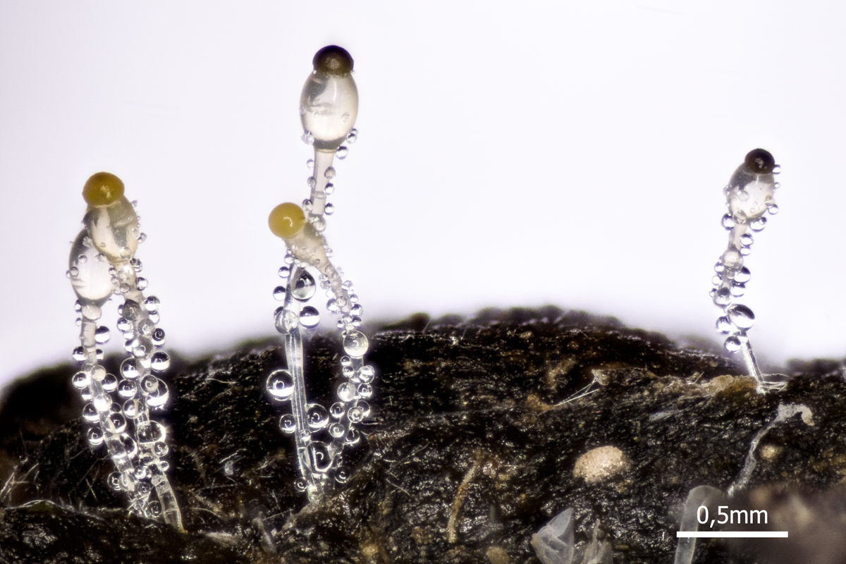 Heute waren plötzlich diese Teile da, die ich nicht einmal grob einem Taxon zuordnen kann. Sie scheinen gelben, gallertigen "Brutkörpern" zu entspringen, die -wenn ich mich nicht irre- schon initial in den Kötteln sichtbar waren.