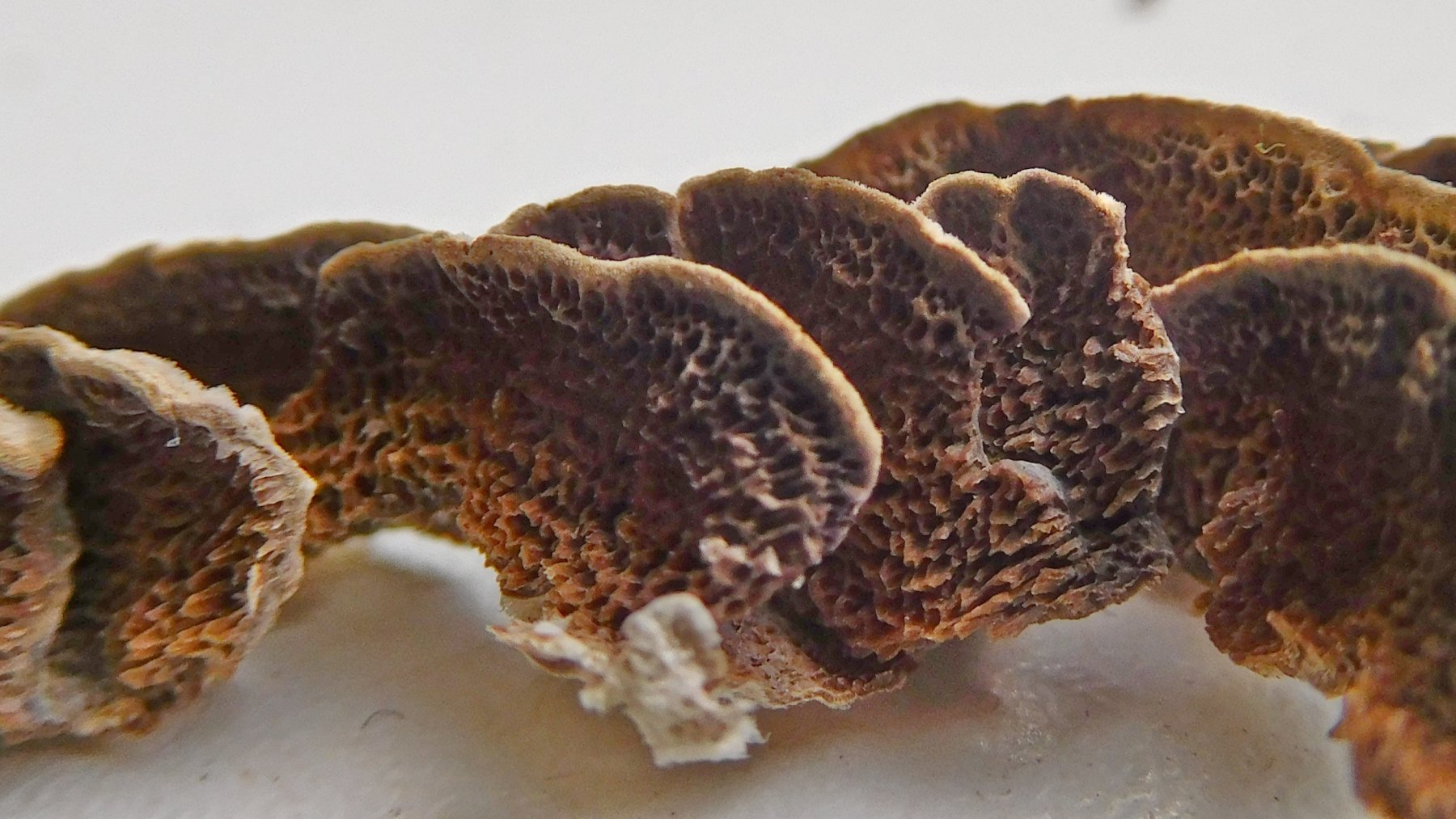 • Das entscheidende merkmal ist, daß Trichaptum fuscoviolaceum nie irgendwelche Poren bildet, auch nicht an den Huträndern.