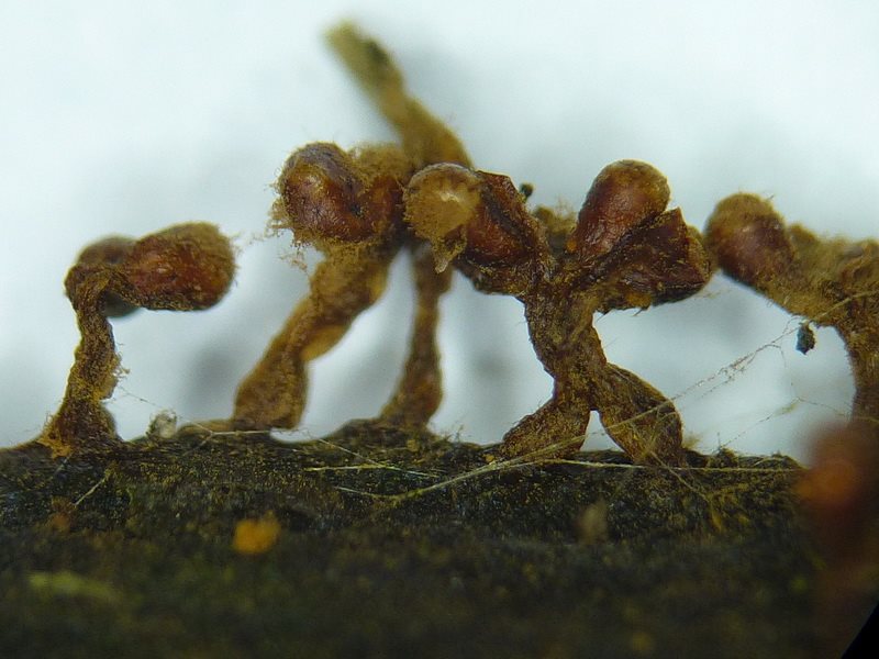 sieht schon eher nach Metatrichia floriformis aus. Trichia botrytis hat gelbe Capillitium was allerdings sonst auch ähnlich aussieht mit den lang ausgezogenen Elaterenenden.